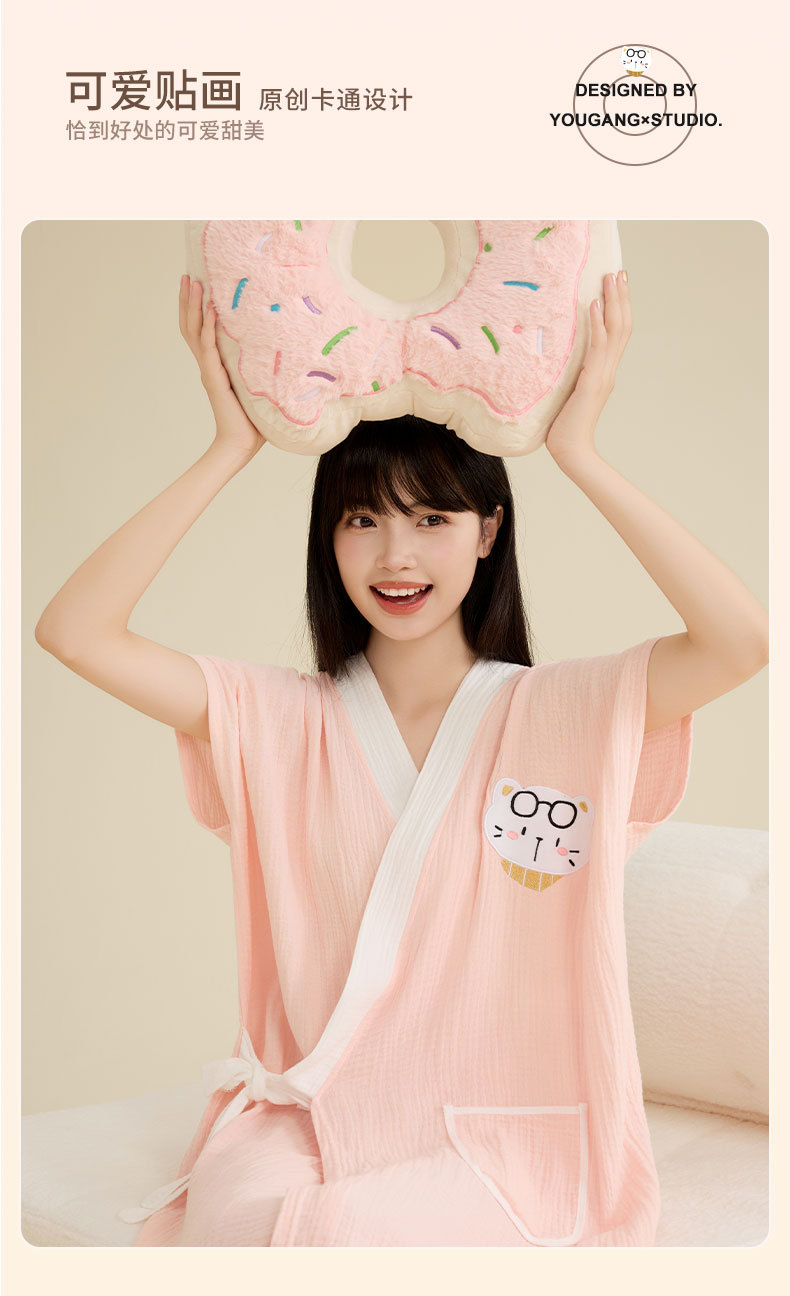 酒店全棉华夫格浴袍薄款纯棉浴衣宾馆民宿男女成人浴袍和服领浴袍