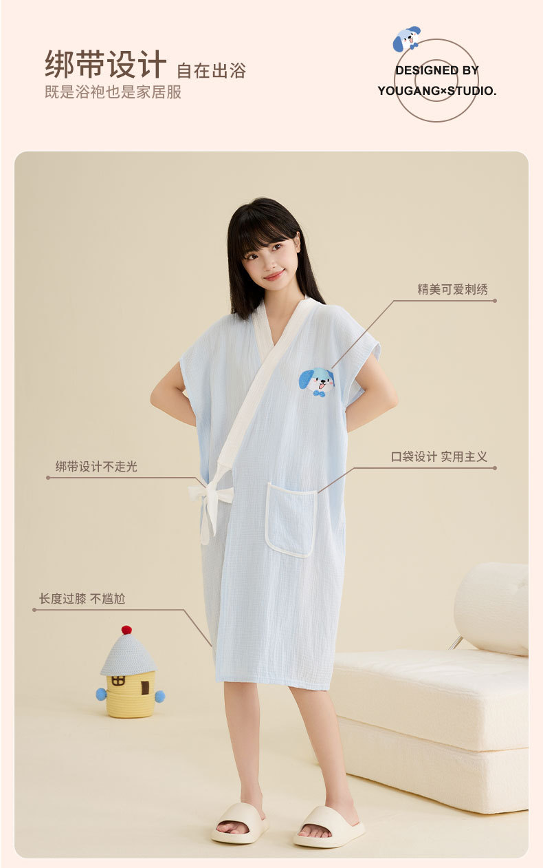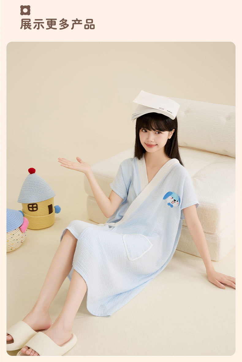 夏季浴袍纯棉纱布轻薄透气洗澡吸水速干可穿式浴巾浴裙宿舍家用