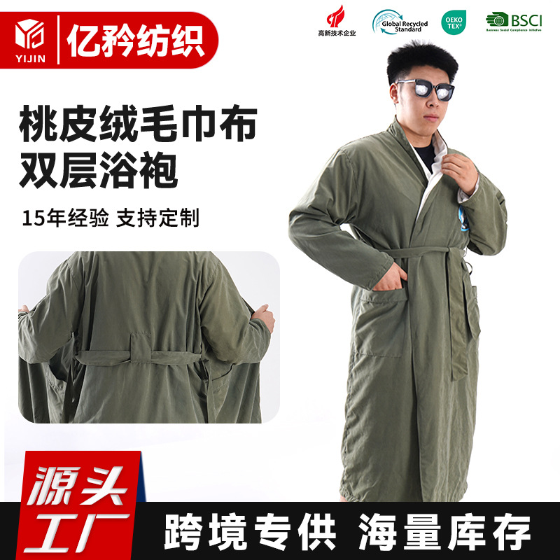 桃皮绒毛巾布双层浴袍保暖舒适速干吸水双层加厚超细纤维双层浴袍