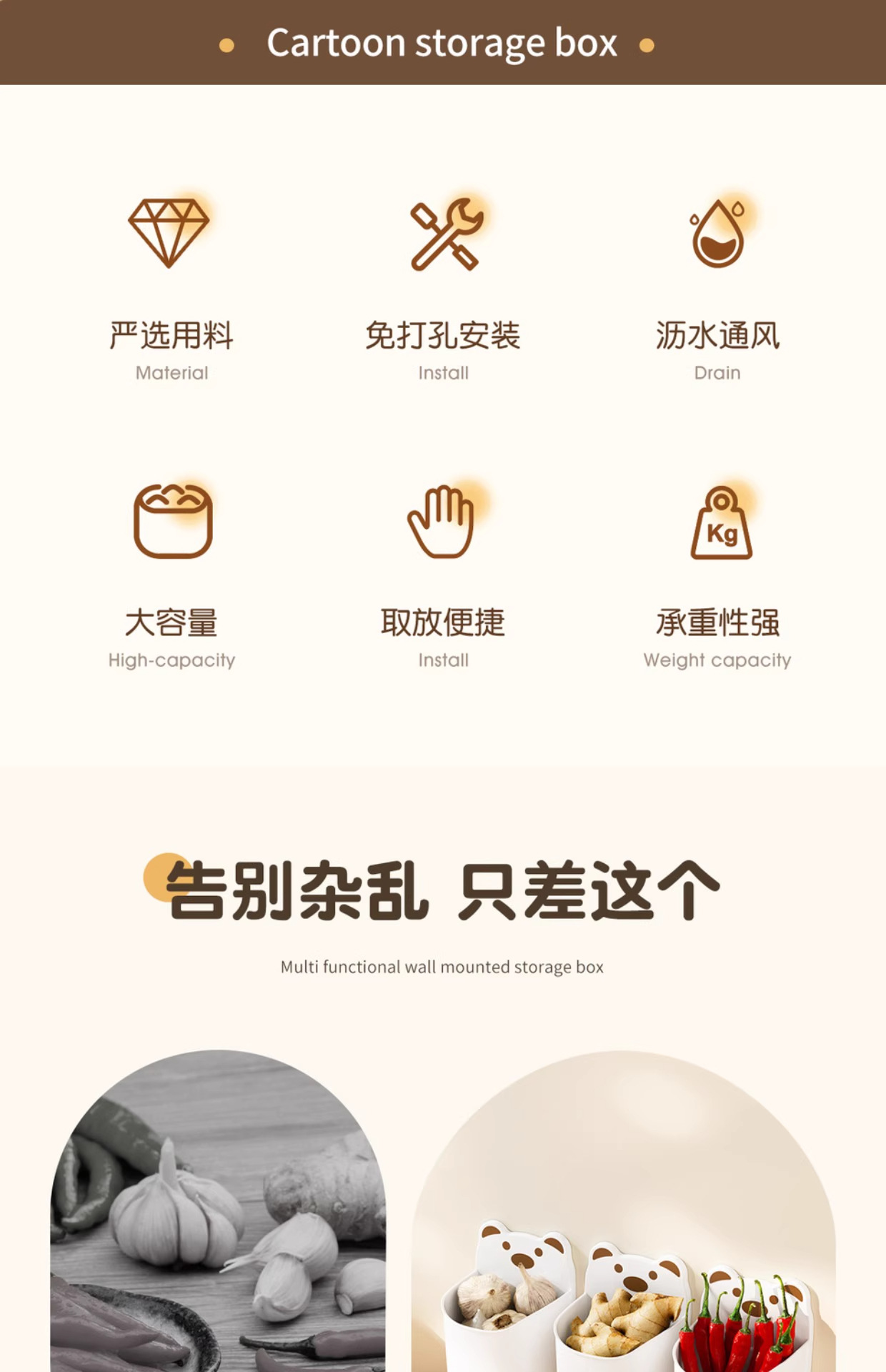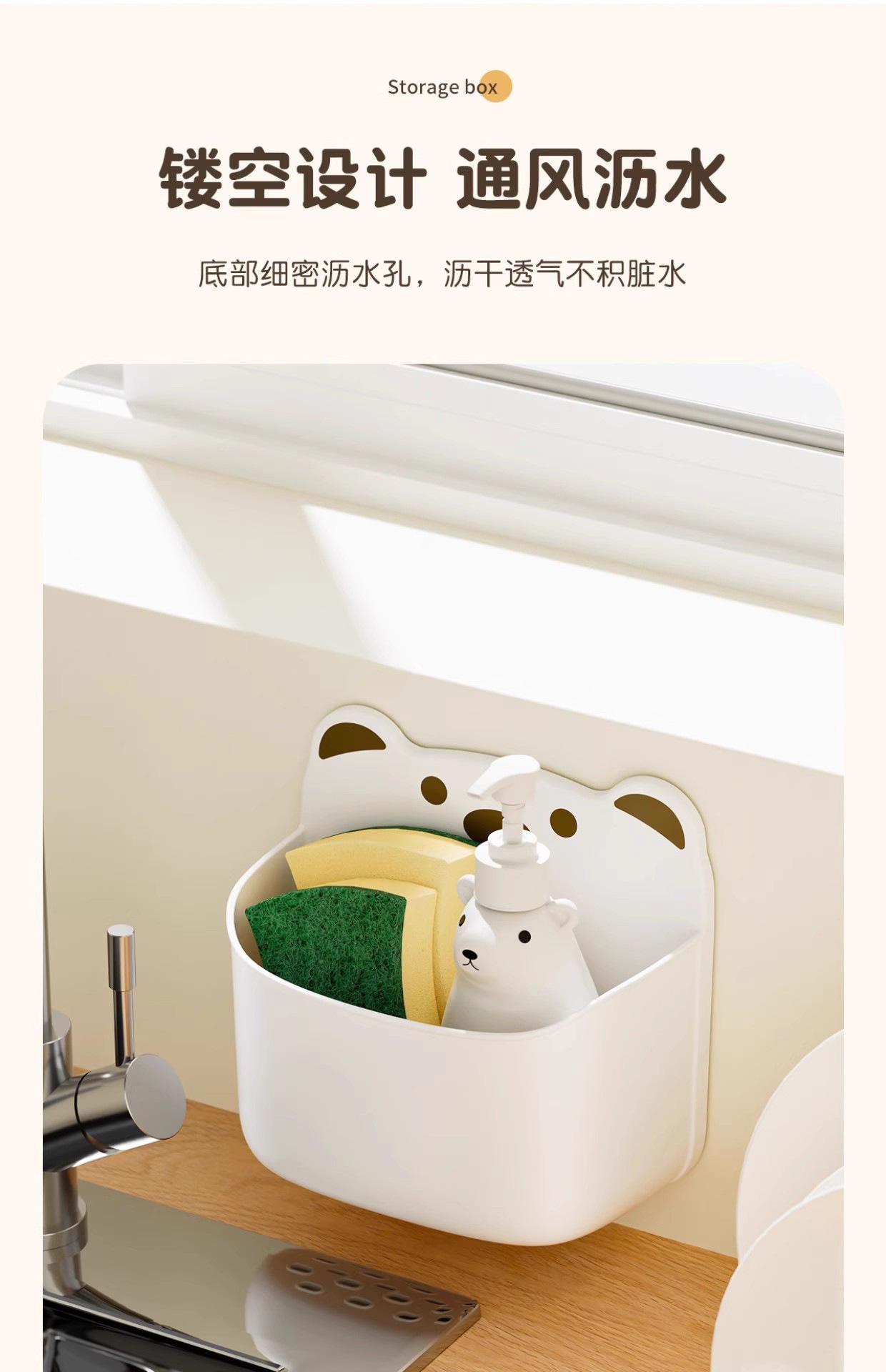 创意卡通熊收纳篮厨房葱姜蒜收纳筐免打孔卫生间杂物收纳置物架
