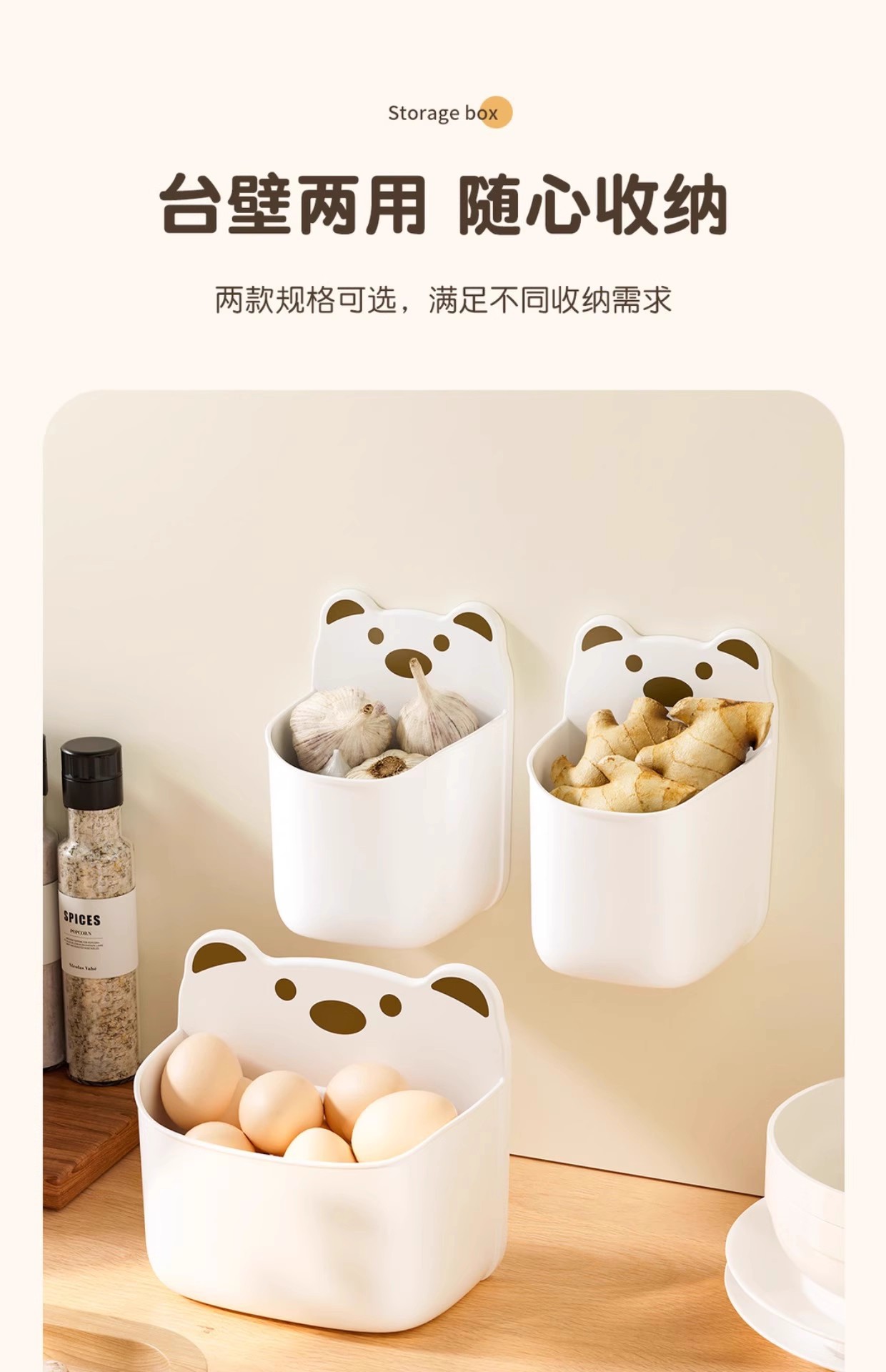 壁挂式卡通熊可爱收纳盒厨房葱姜蒜免打孔置物墙上收纳冰箱侧挂蓝