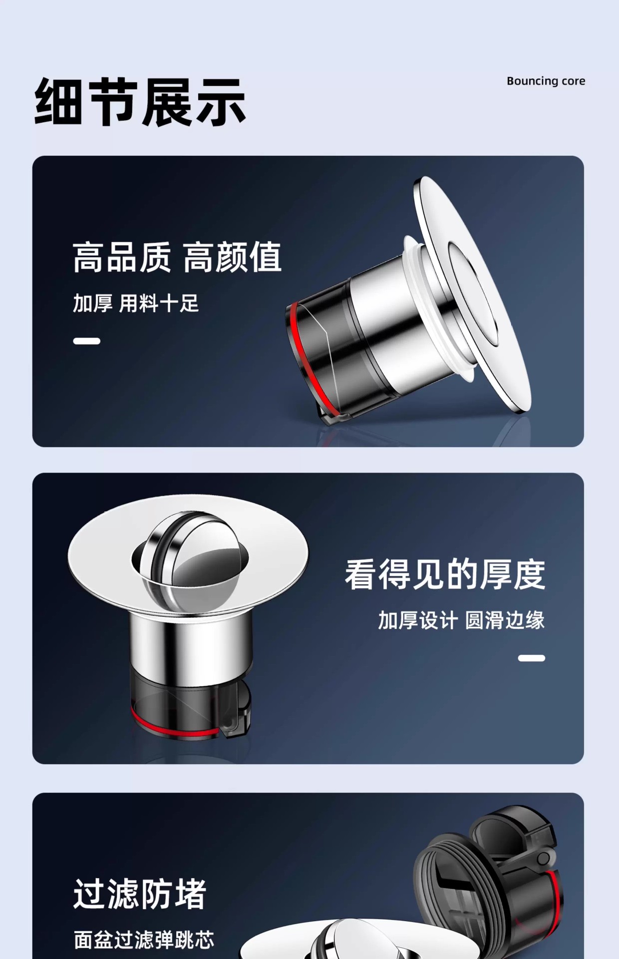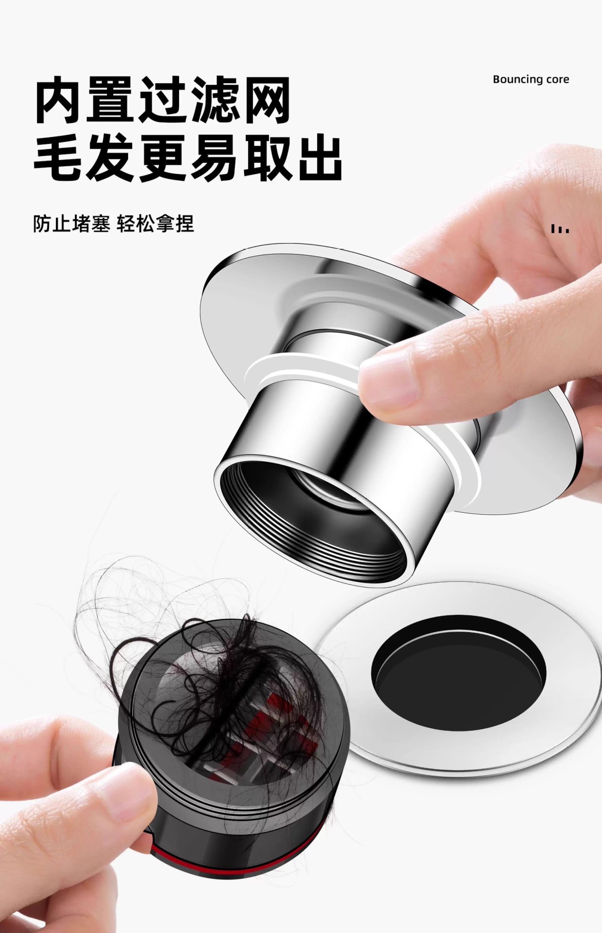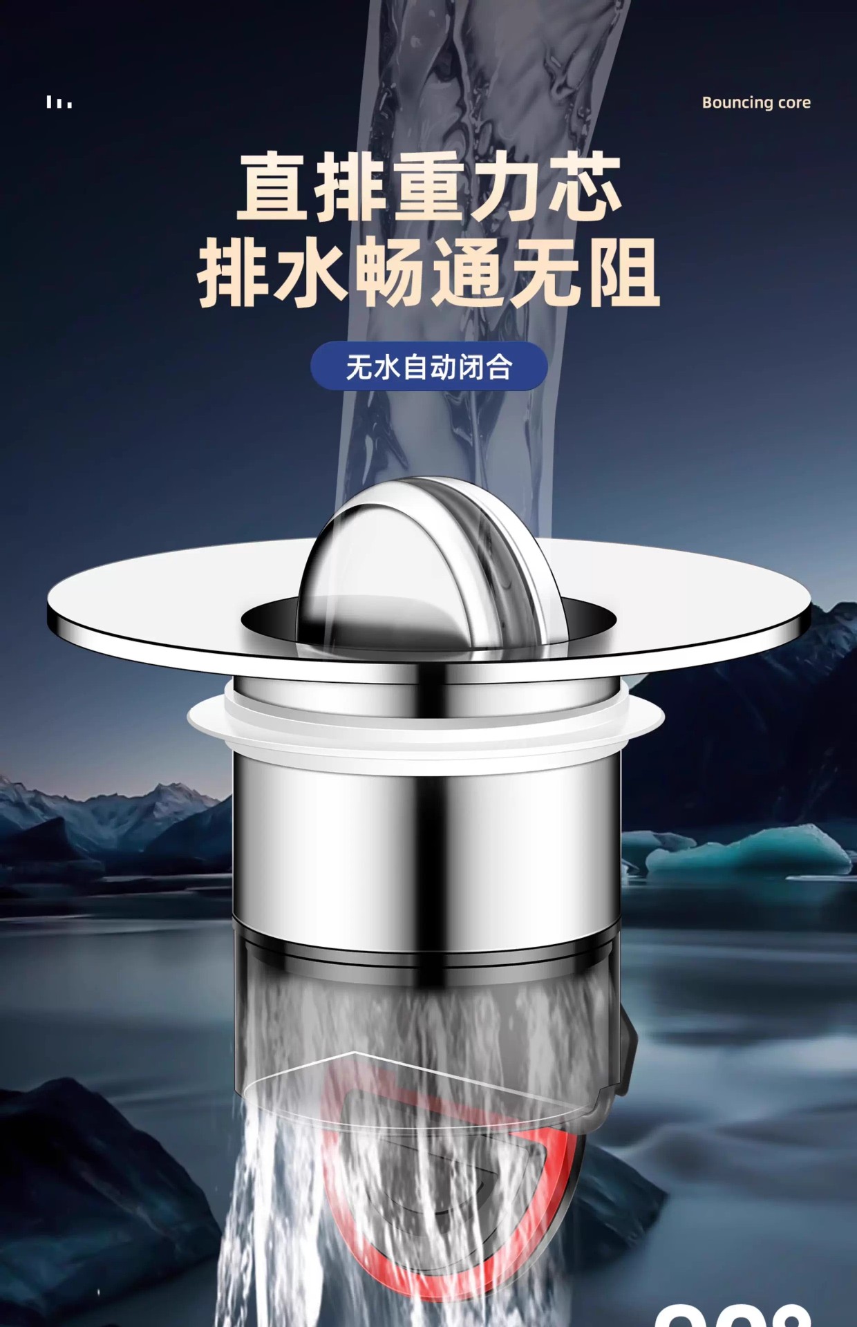 不锈钢翻版洗手盆漏水塞水池洗脸盆通用下水器配件弹跳芯防臭神器