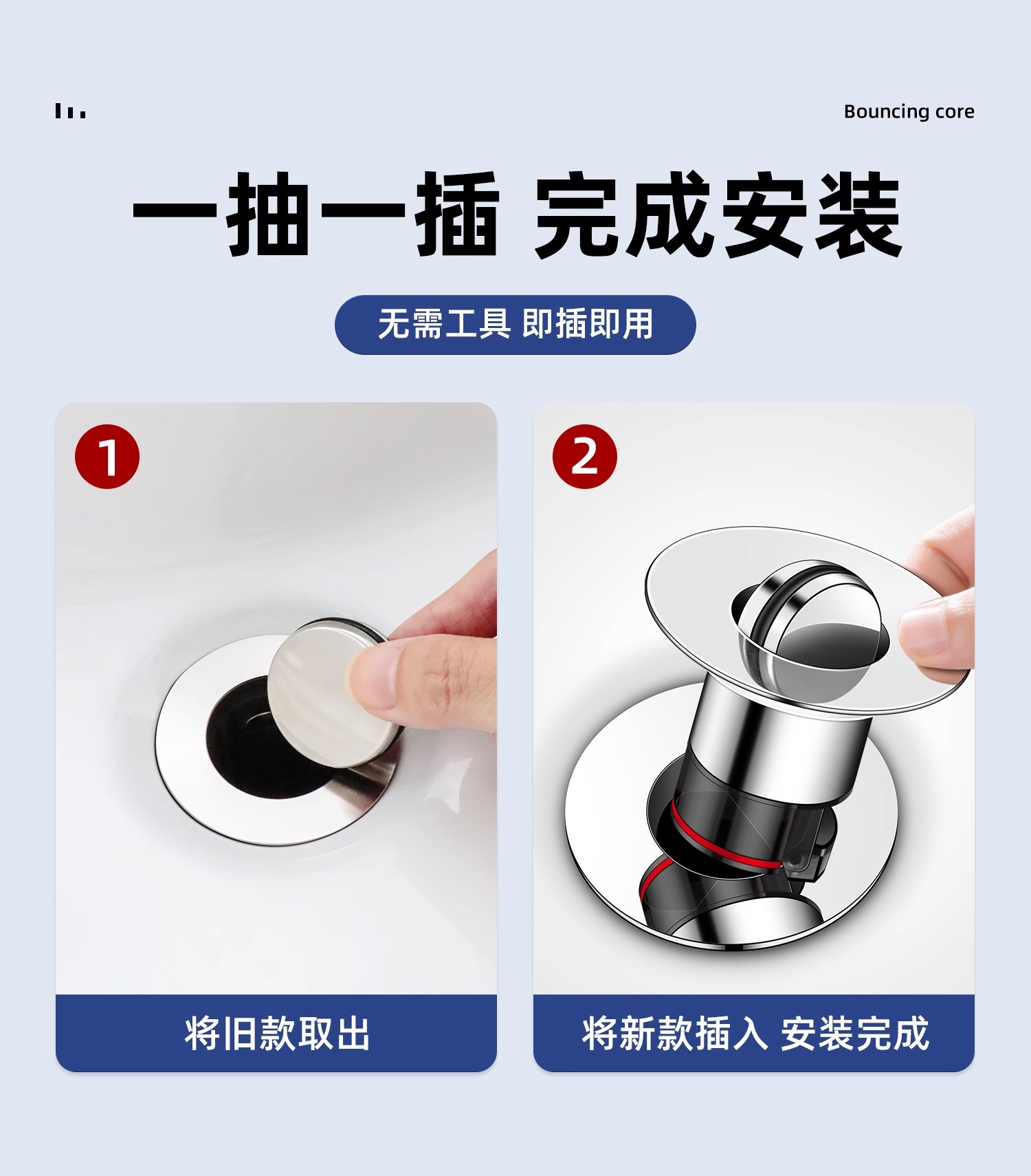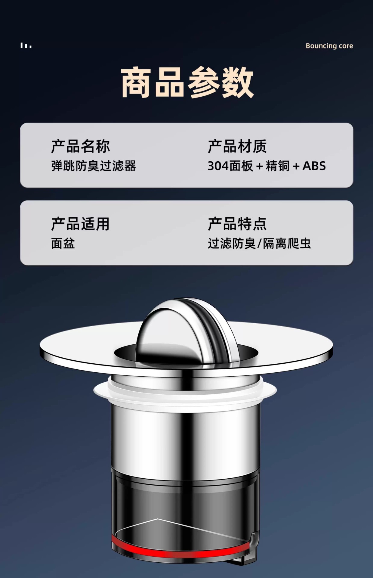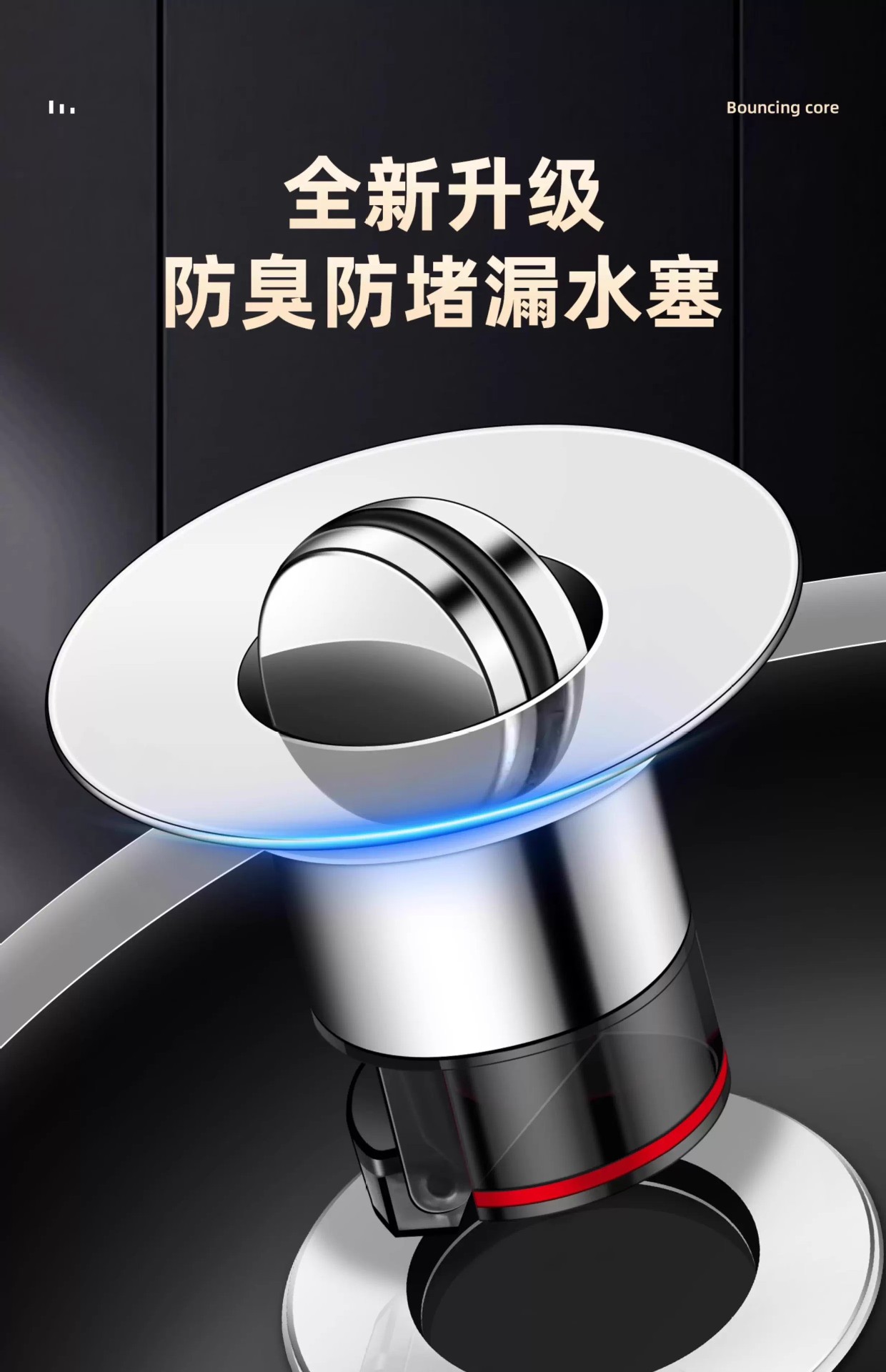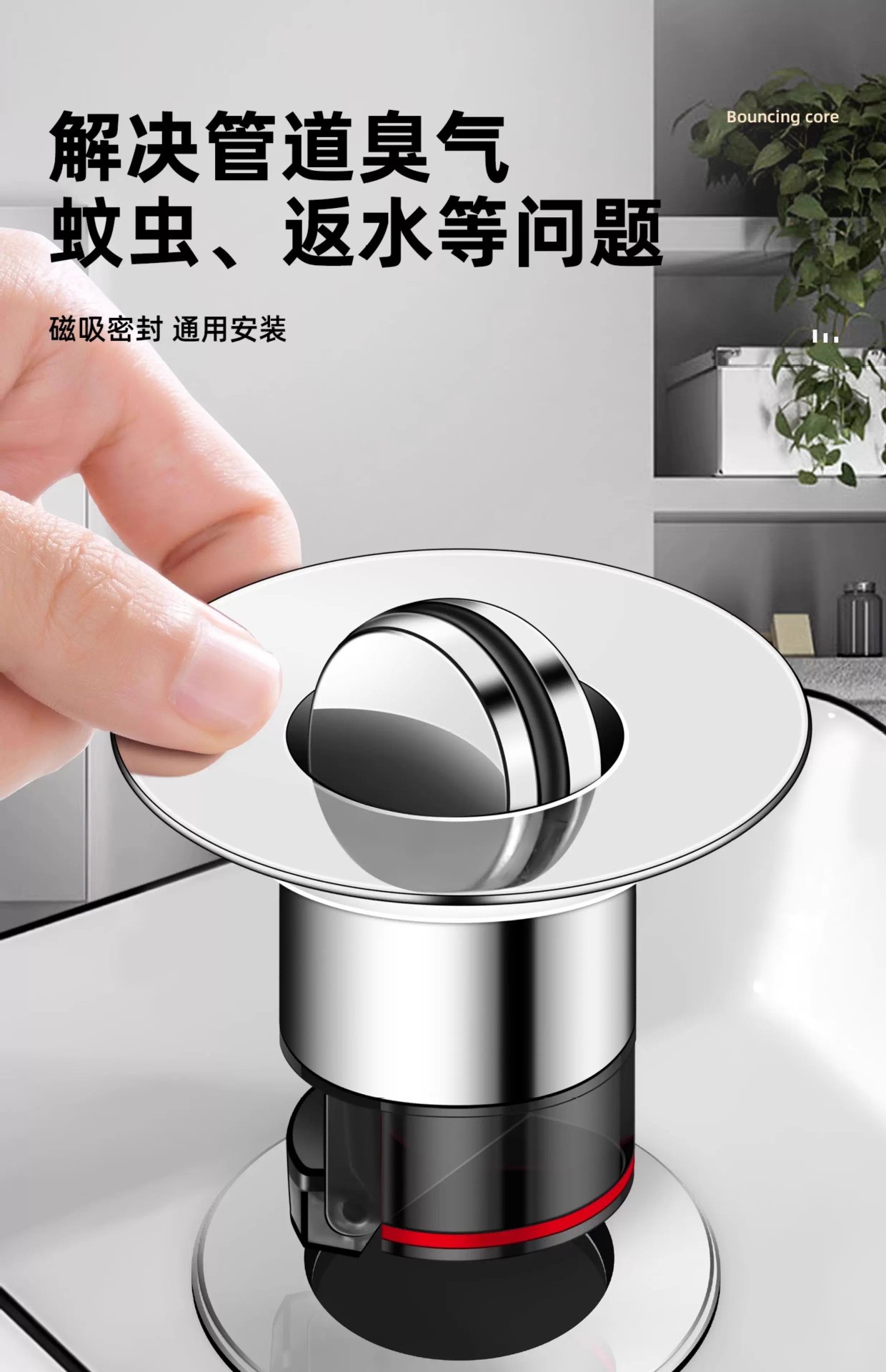 不锈钢翻版洗手盆漏水塞水池洗脸盆通用下水器配件弹跳芯防臭神器