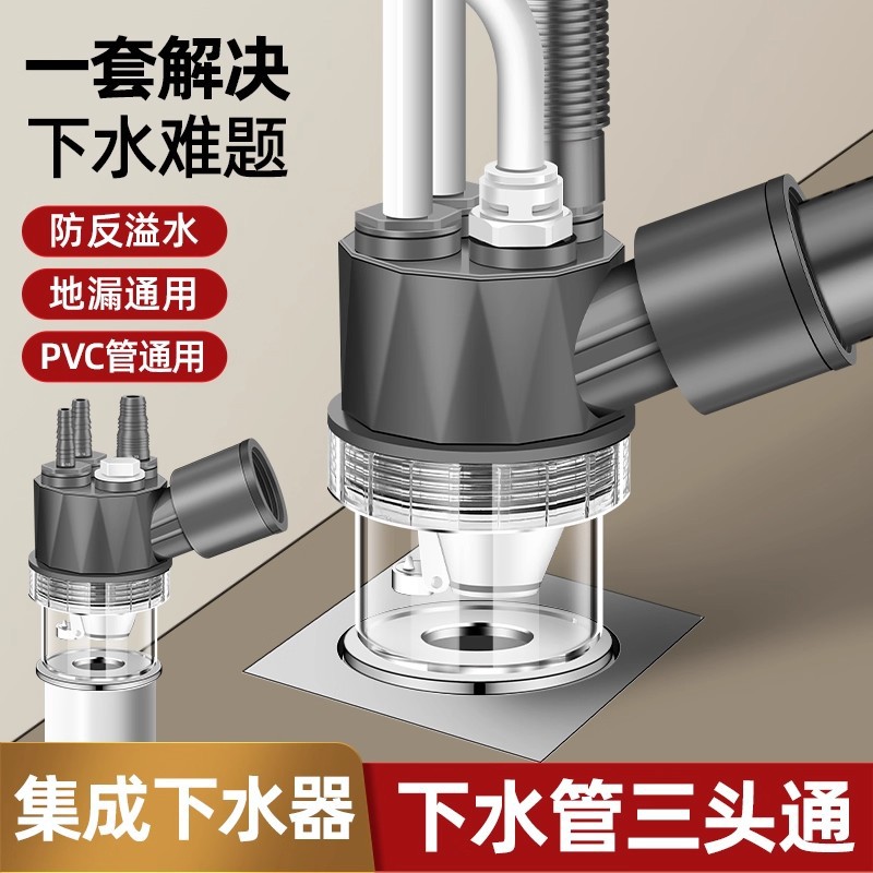 洗衣机下水管三头通地漏接头烘干机扫地机排水管三通二合一分水器