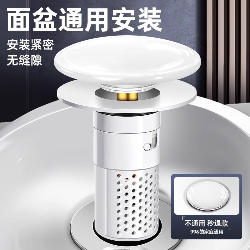 陶瓷盖洗手盆漏水塞子洗脸盆水池按压式弹跳芯下水器防臭防堵配件