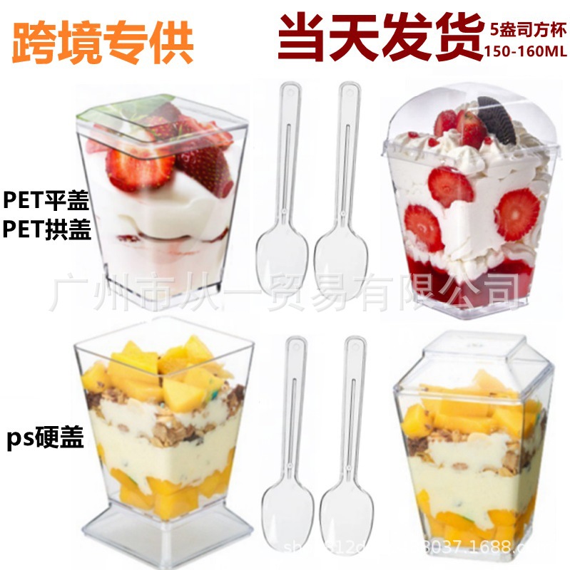 160ml角型はしごカップ5ozパーティー前菜デザートプリン果物アイスクリームヨーグルトカップ蓋付きスプーン