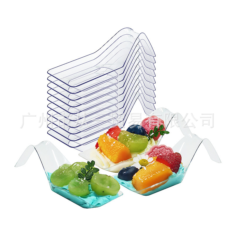 跨境爆款甜品碟一次性小碟子迷你开胃菜弯腰碟蛋糕碟茶歇碟高跟勺