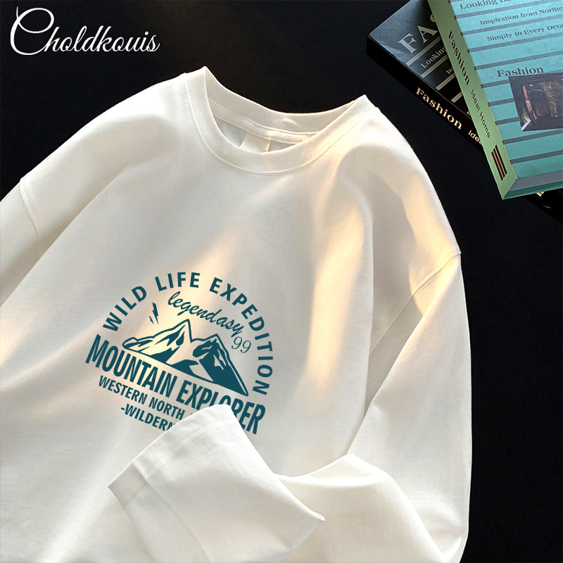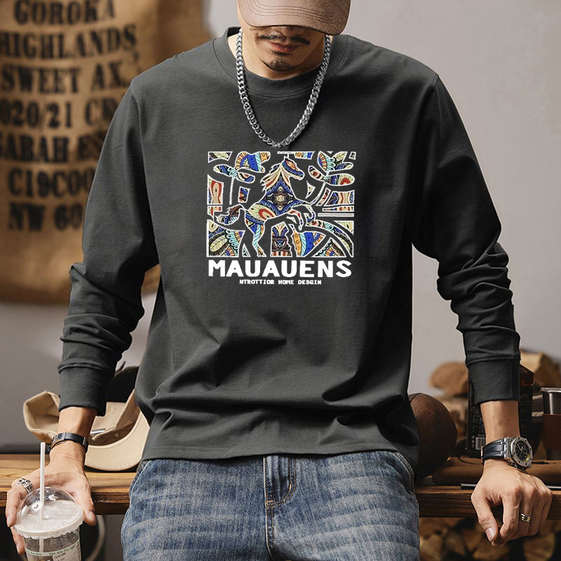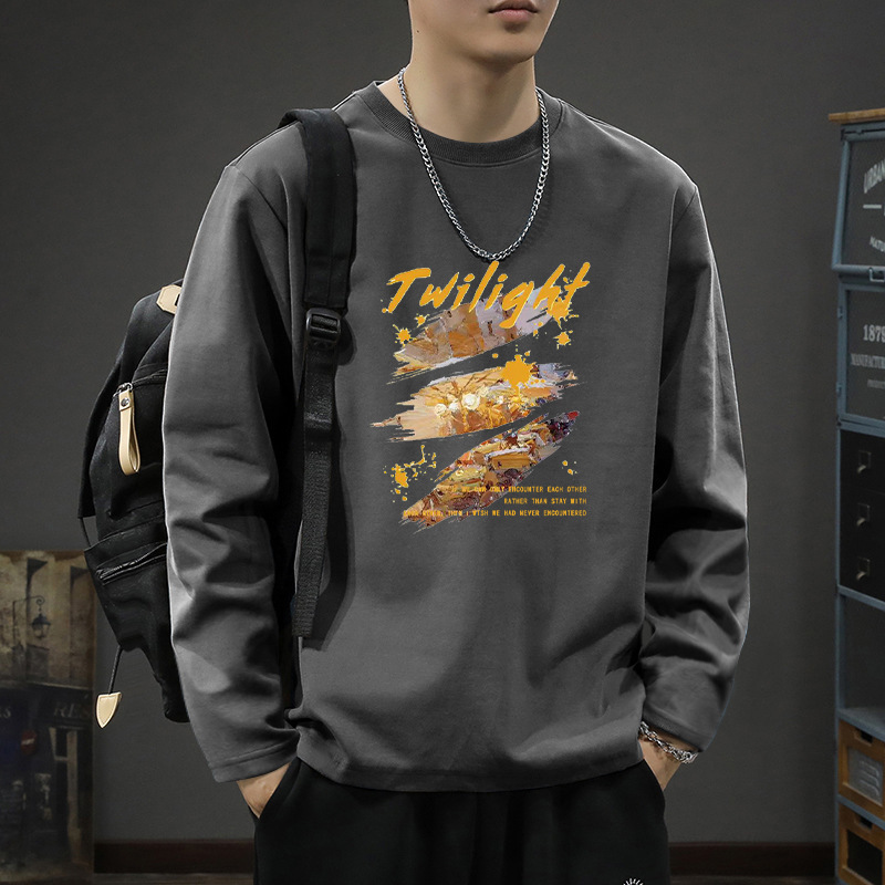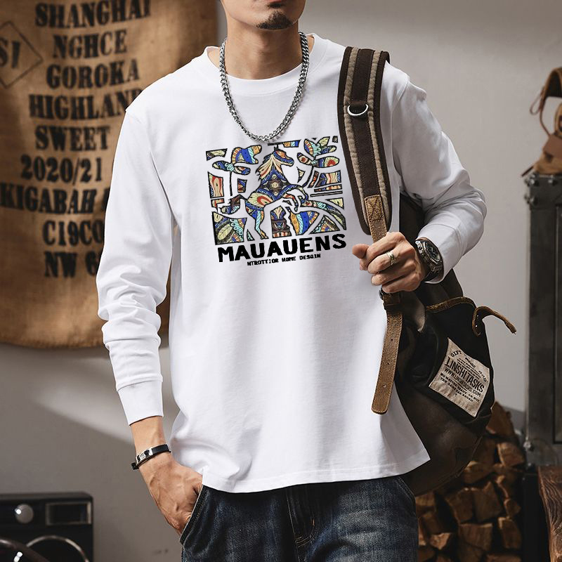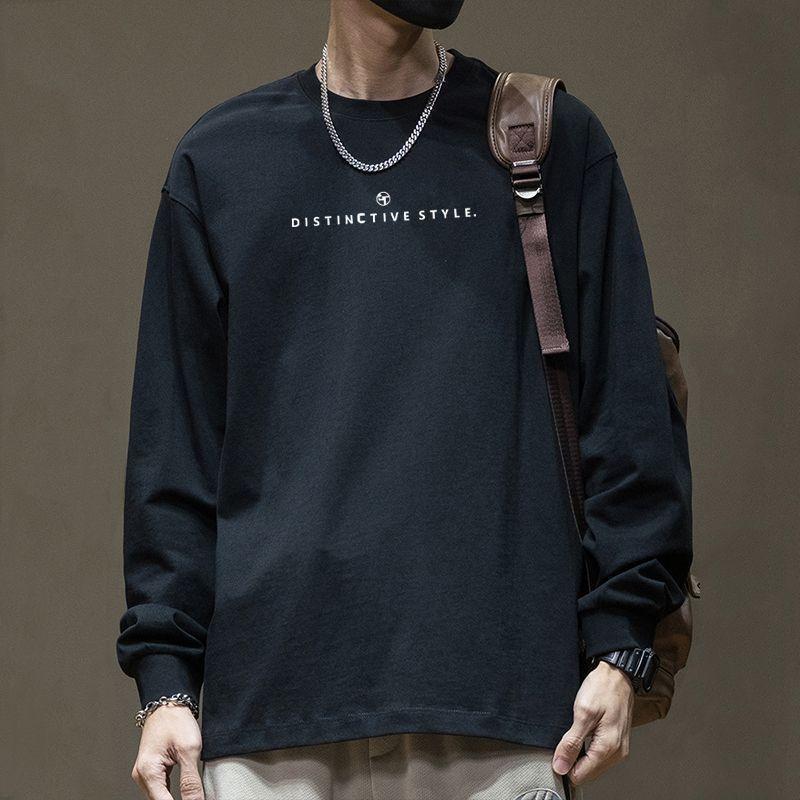 秋季新款200g重磅长袖T恤男纯棉宽松印花内搭打底衫男