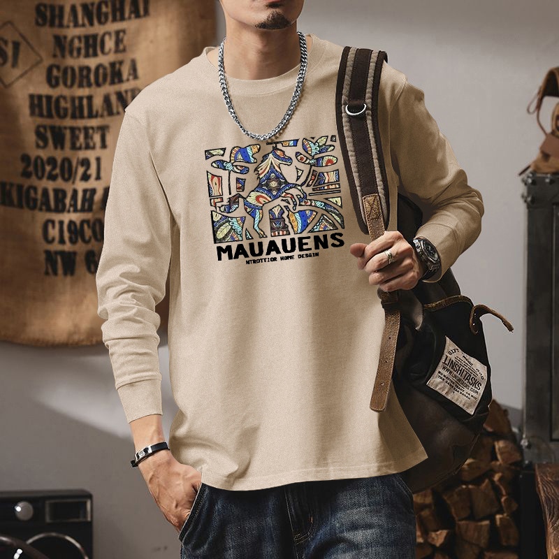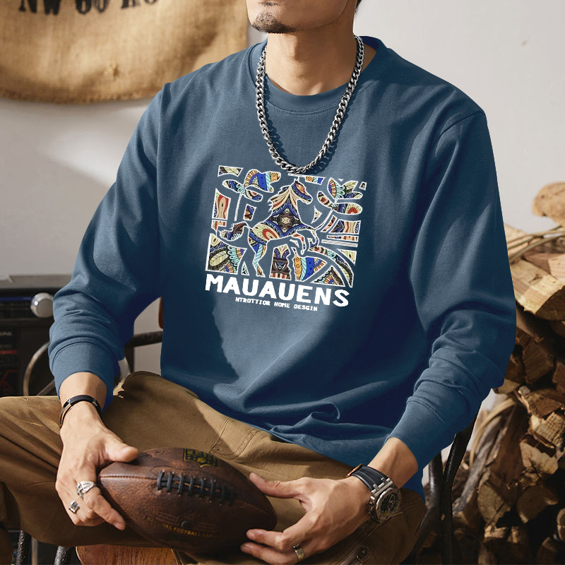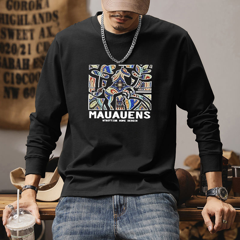 纯棉长袖t恤男秋季新款美式休闲上衣宽松圆领打底衫男图案时尚