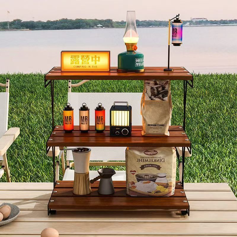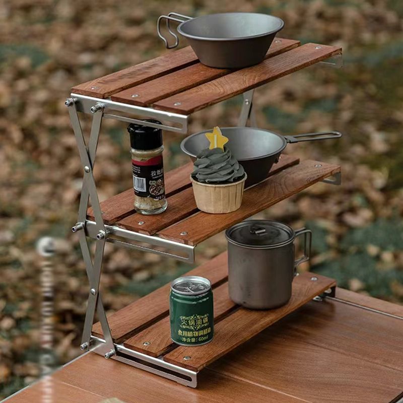 アウトドアキャンプ三層折りたたみポータブル収納ラックピクニックバーベキュー収納ラック多機能靴ラックフラワーラック
