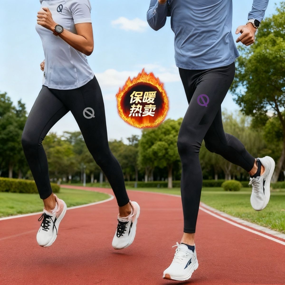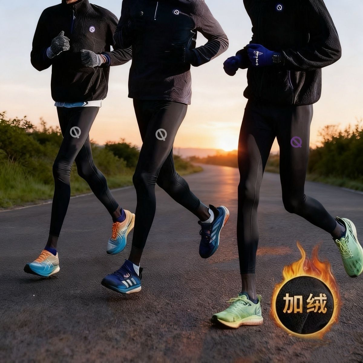 秋冬季晨跑训练加绒九分紧身压缩裤运动跑步田径马拉松长裤男女