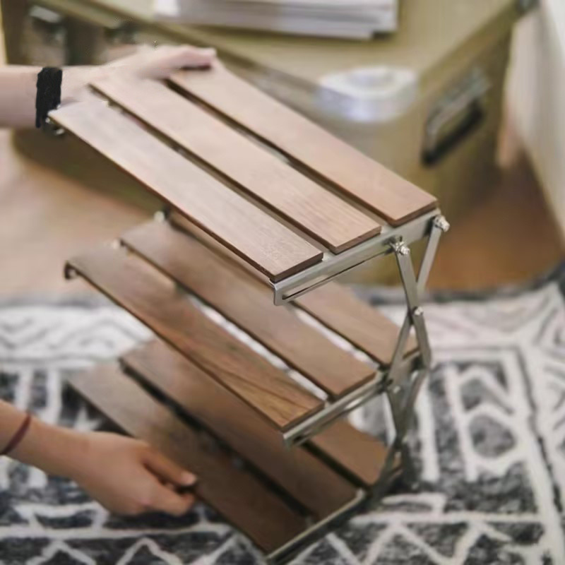 アウトドアキャンプインハイエンドデスクトップ収納ラックシンプルな無垢材デスク寝室寮収納二層折りたたみ
