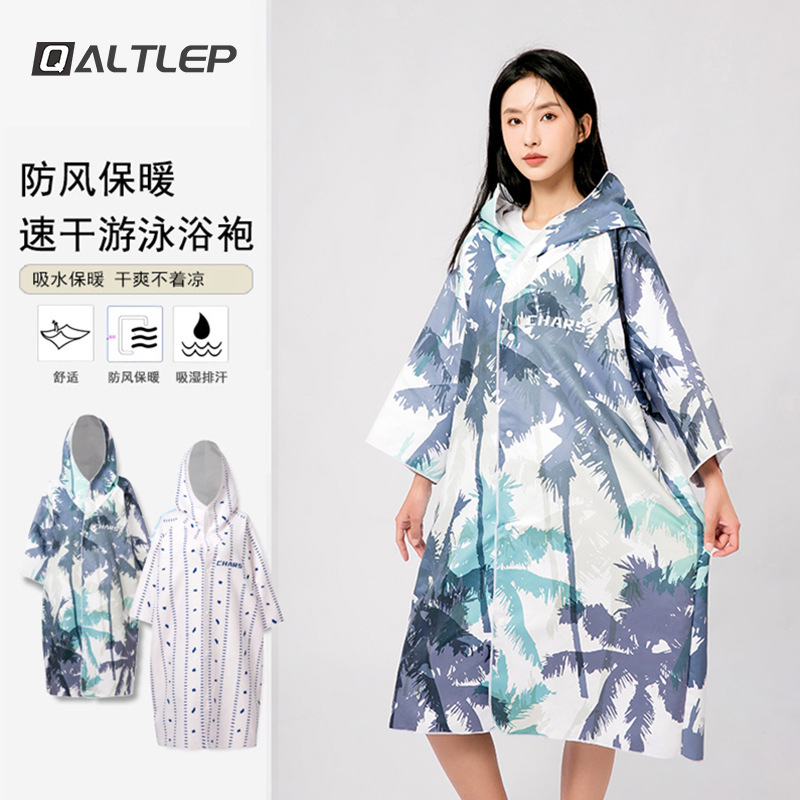 水泳バスローブ吸水バスタオル交換速乾マント帽子付き男女マント運動日焼け止めビーチタオル