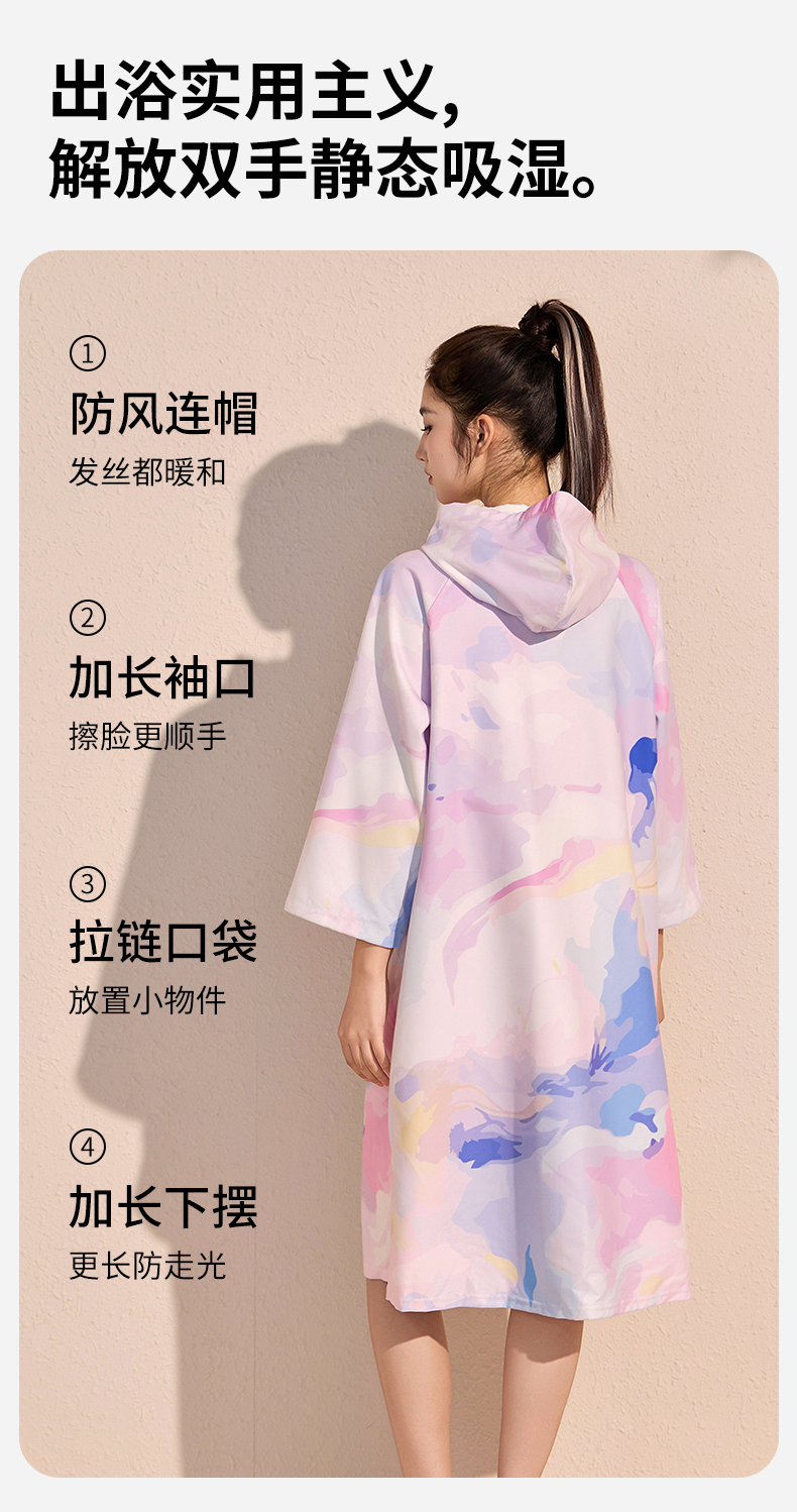 速干浴袍连帽浴巾男女款沙滩防晒游泳浴巾温泉度假便携保暖浴袍