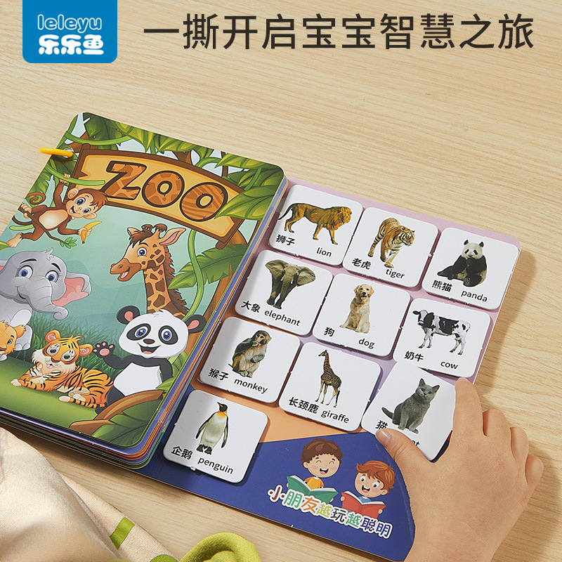 モンテッソーリ静かなティアオフブック早期教育ベルクロ赤ちゃん認知カード赤ちゃん読み書きペーストカード啓発知育玩具