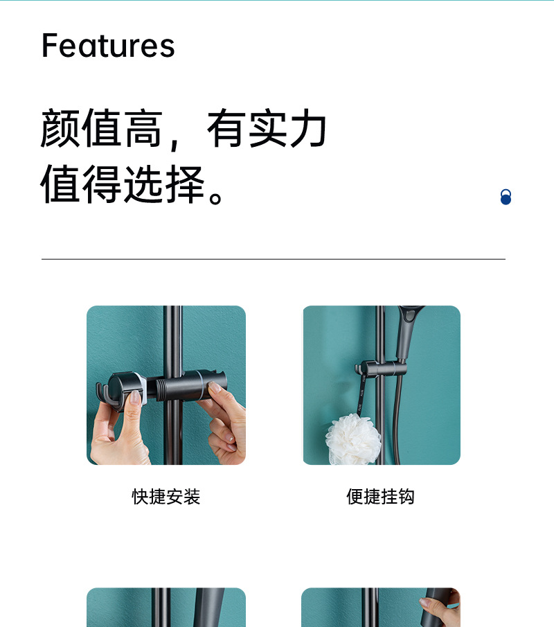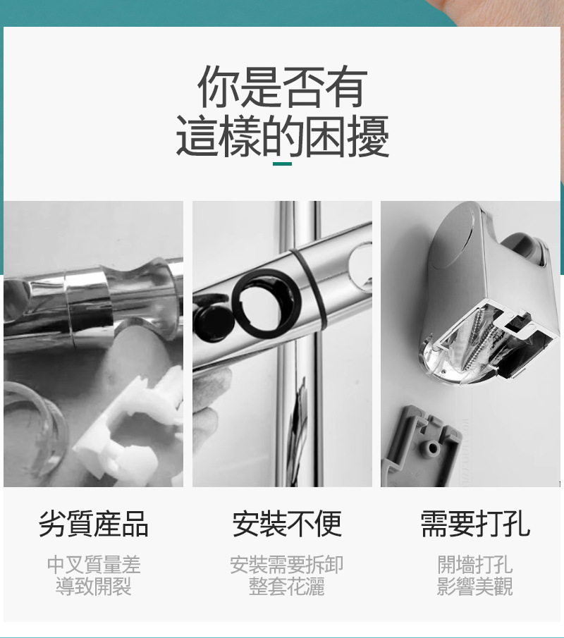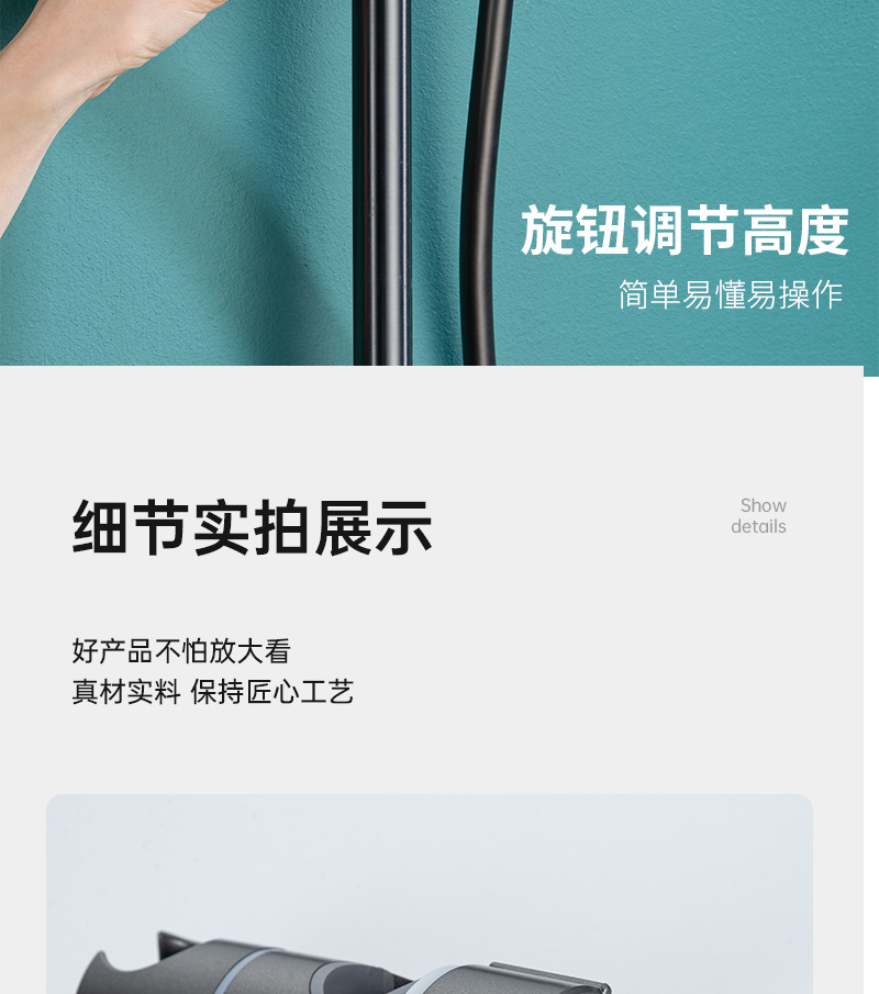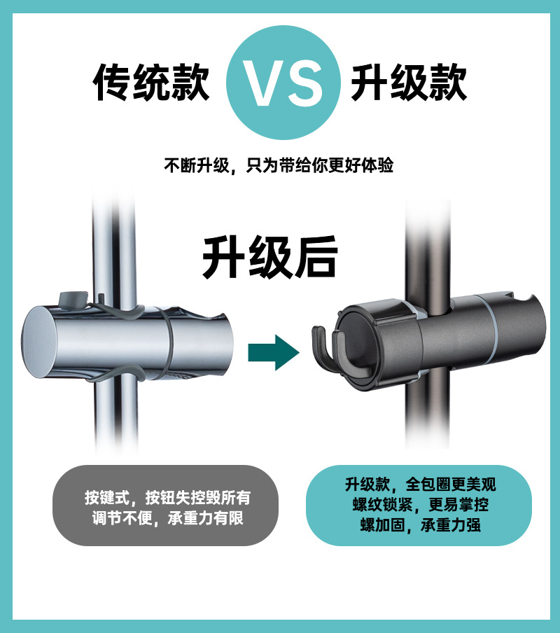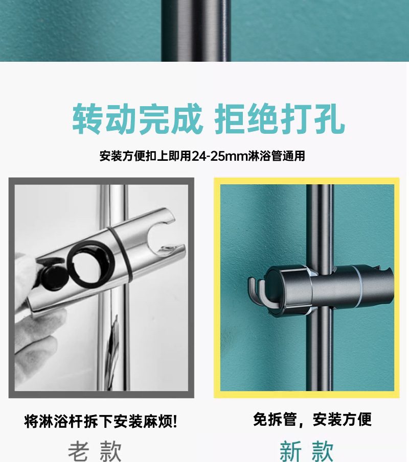 花洒支架免打孔免拆滑套可调节升降杆挂座淋浴器套装带钩花洒配件