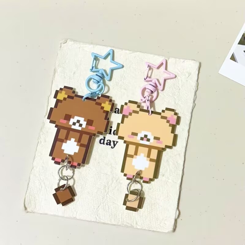 新款卡通轻松熊像素挂件亚克力甜美少女心学生书包挂情侣钥匙扣