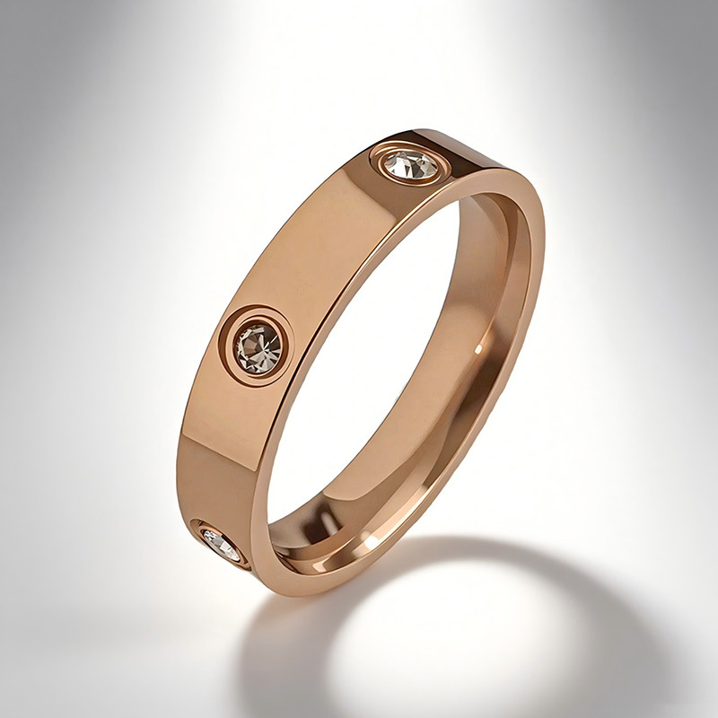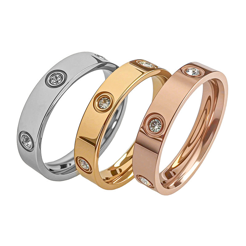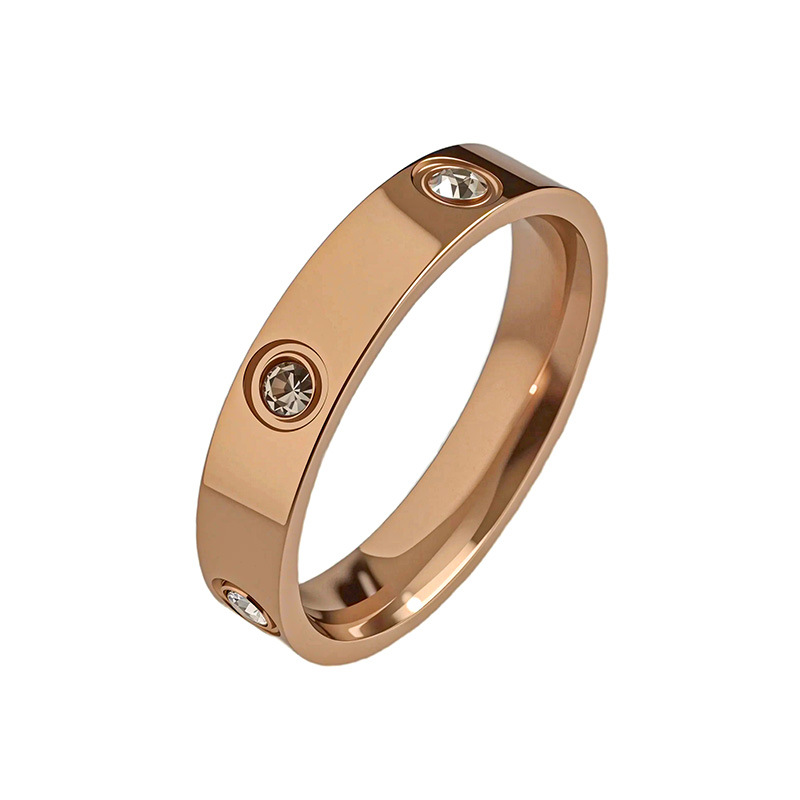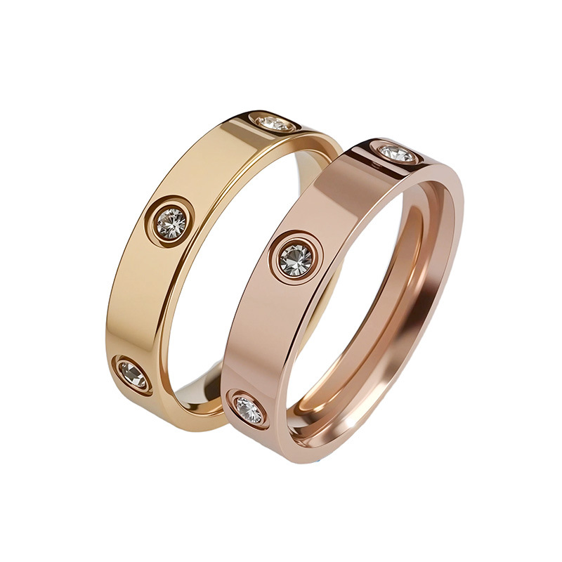 チタン鋼の指輪の女性のネットの赤い熱い販売のドリルの素の輪の6つのドリルのカップルはバラの金の女性を戒めます。