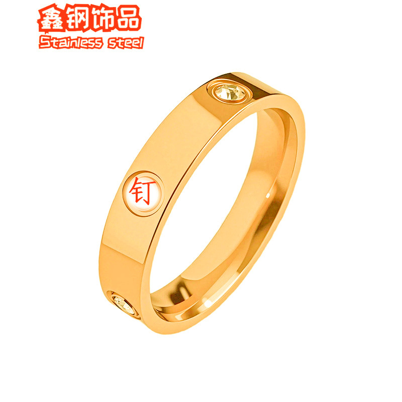 色あせないネット赤軽豪華なダイヤモンド18k指輪ins高級男女チタン鋼カップルペアリングファッション洗練された指輪