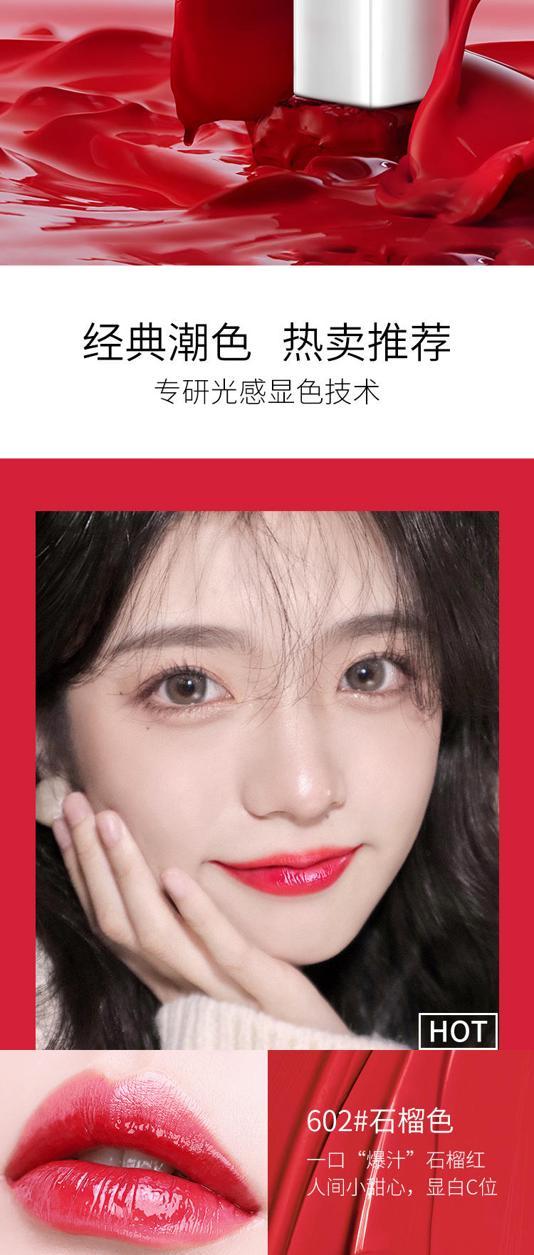 雅邦の水は躍動感を漂わせて明るくて、唇の色の裸の化粧の唇の蜜が豊かで明るくて、保湿して透明度が良いです。口紅を配合します。
