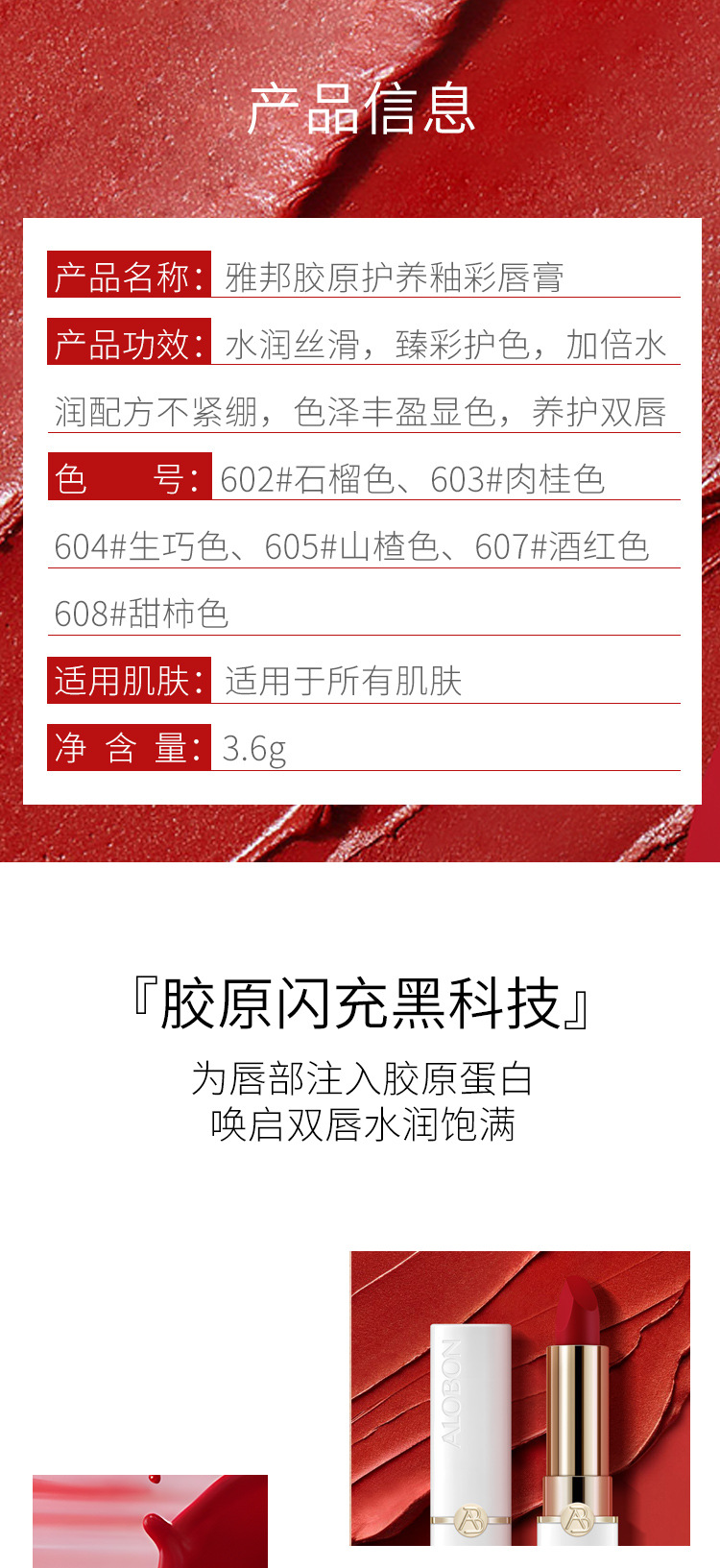 ALOBON雅邦胶原护养釉彩唇膏防水持久显白不掉色持妆滋润保湿