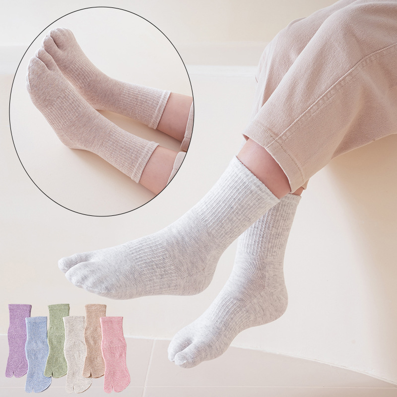 二趾棉袜源头厂家女士两指袜秋冬季棉分趾袜纯色男女二指袜中筒袜