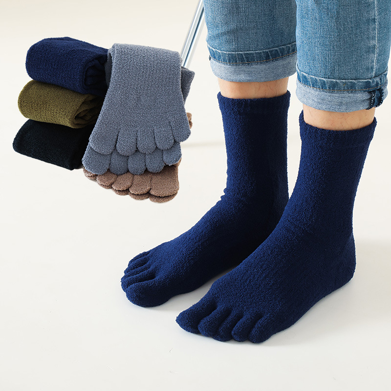 24新商品の男性二足指の靴下はカジュアルでシンプルな秋冬の筒の親指の靴下の綿の質が厚くて汗を吸う効果が良いです。