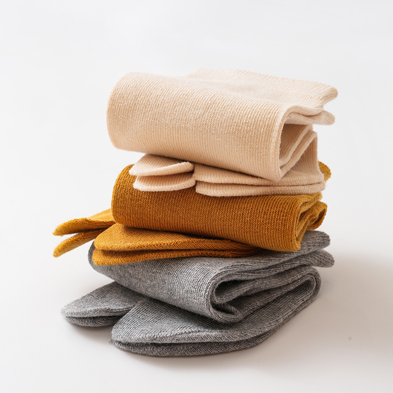 新しい子供の純色の綿の2本の指の靴下の秋冬の大きい子供の学生の中で筒の精櫛の綿の親指の靴下の商品の供給源は安定しています。