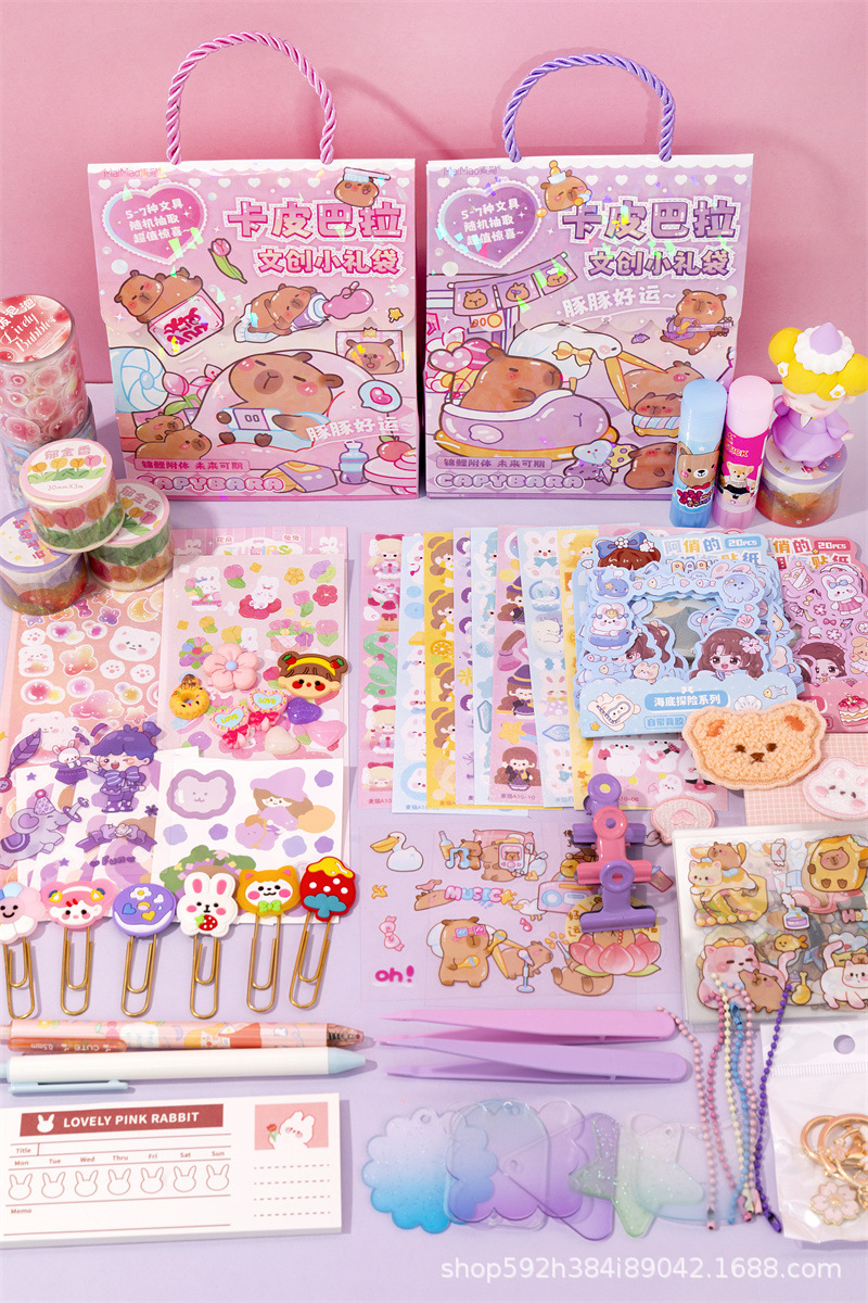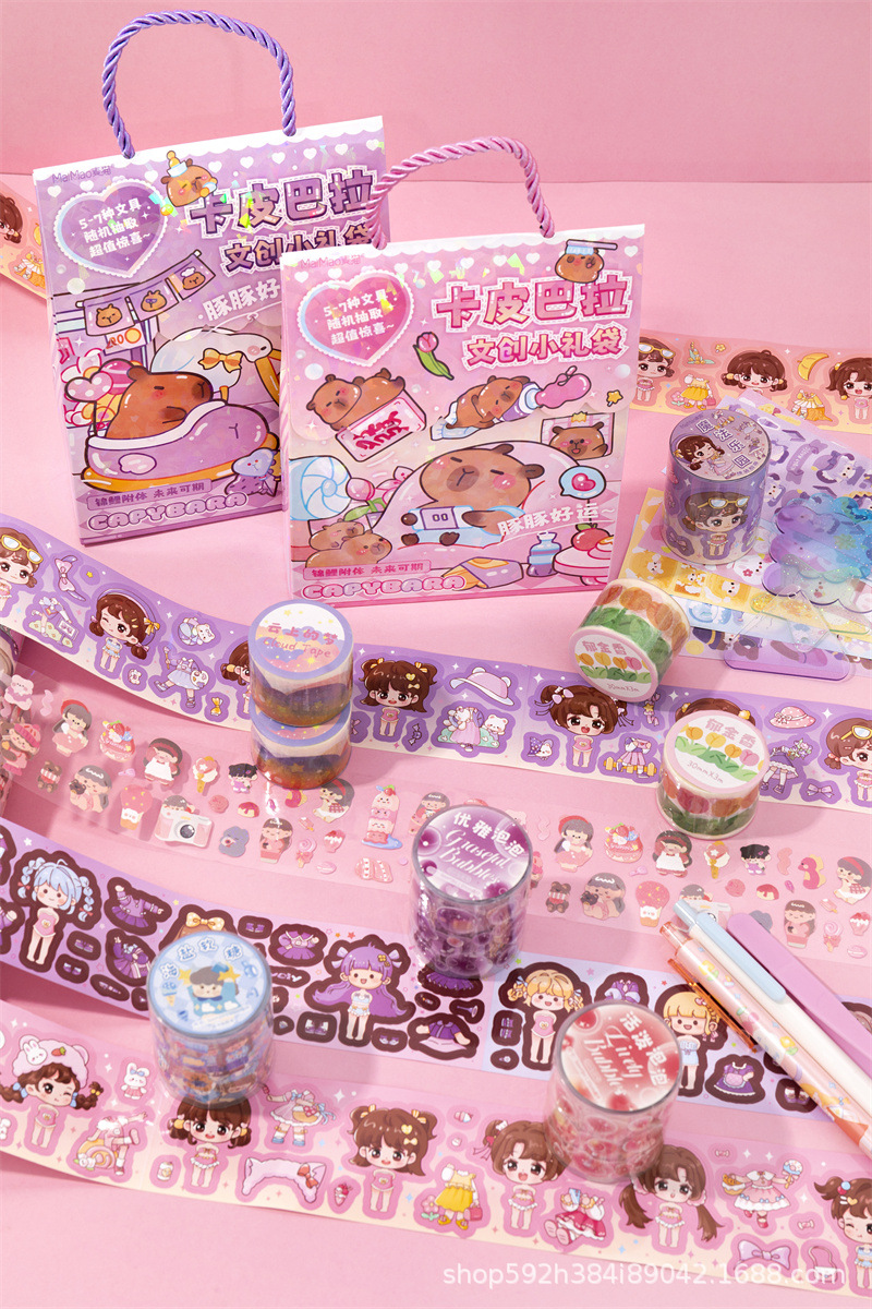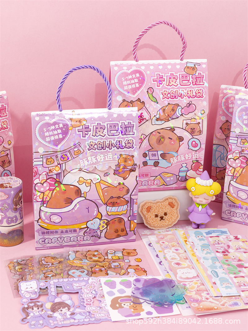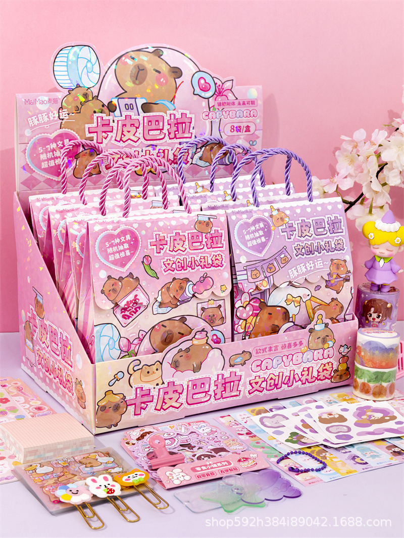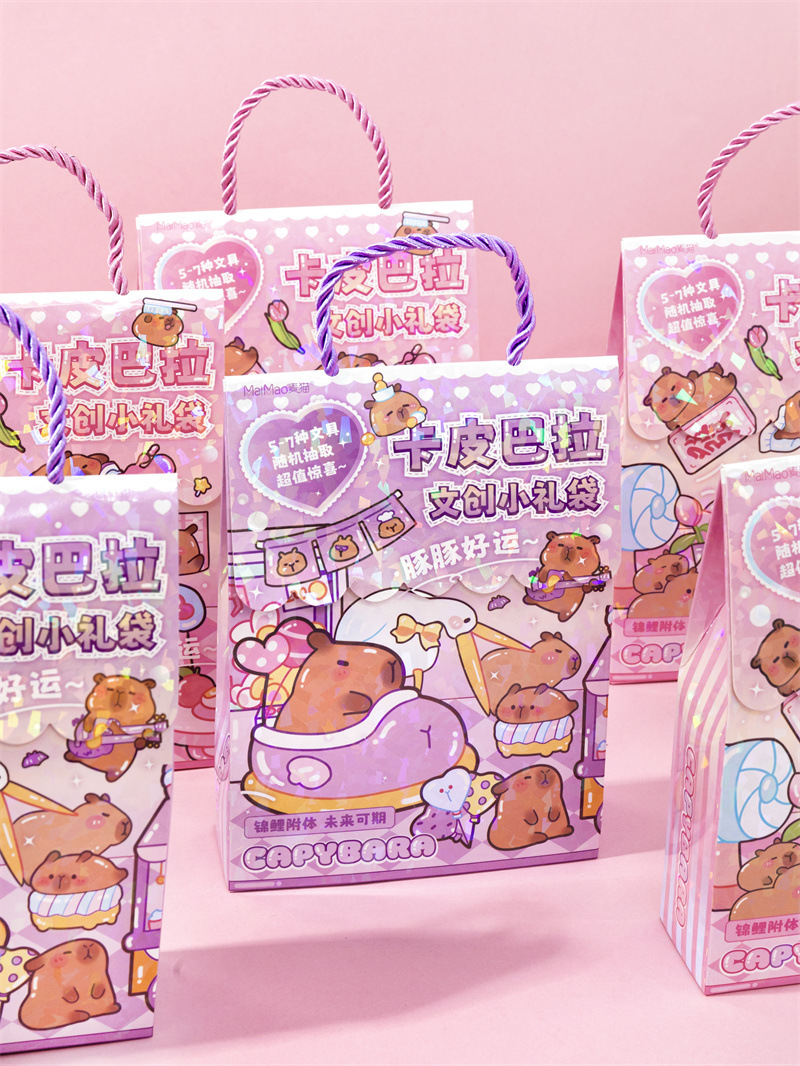 卡皮巴拉盲盒儿童生日回礼物小礼袋文创限定礼品手提盲袋文具贴纸