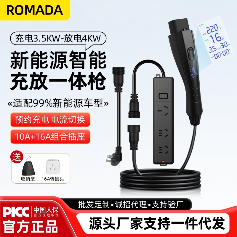 新能源汽车充电放电枪智能二合一便携充放电一体智能数显交流通用