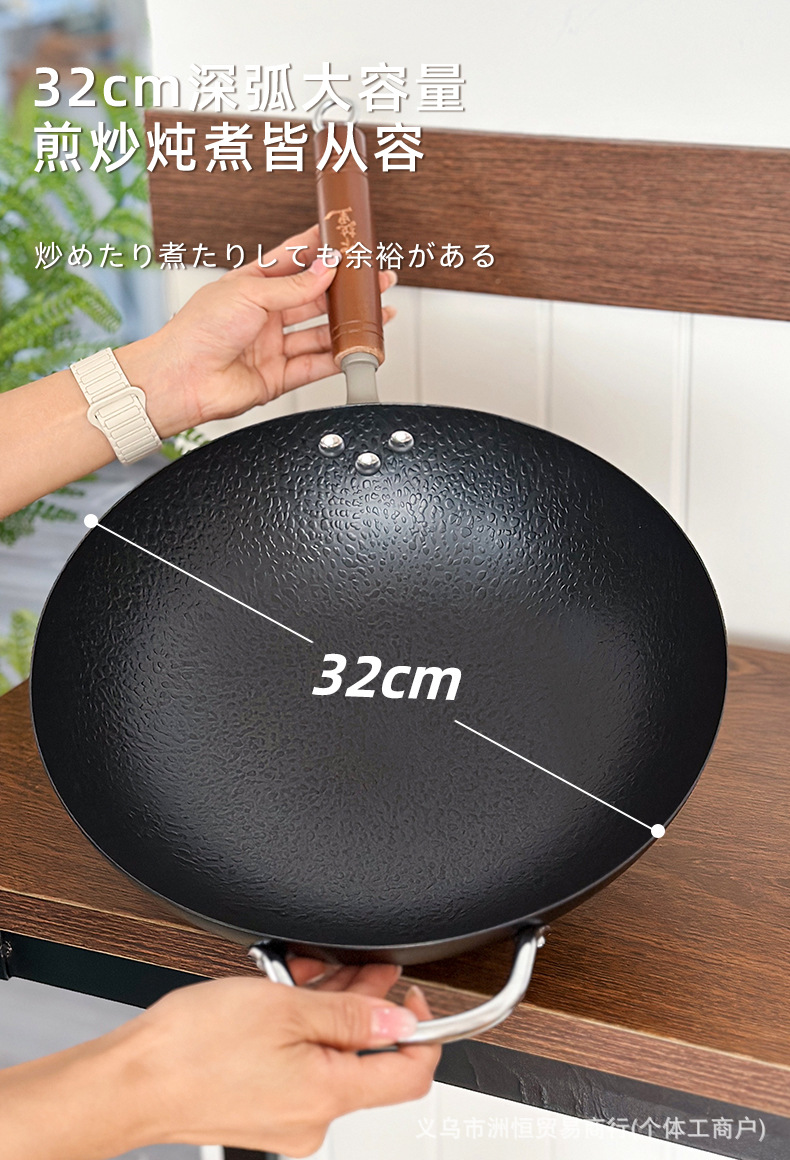 日本カラリ 24 センチメートル & 28 センチメートル大腹鉄鍋家庭用中華鍋ミルクポット鍛造調理無塗装中華鍋