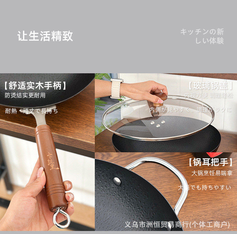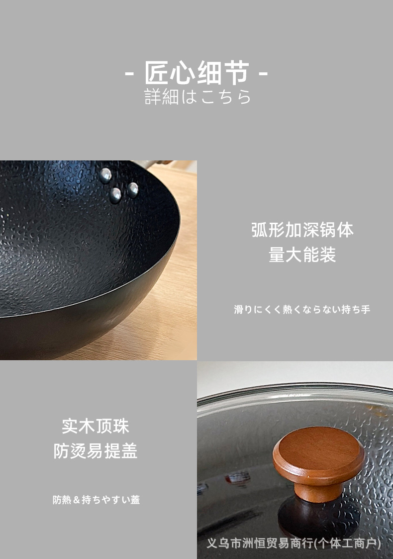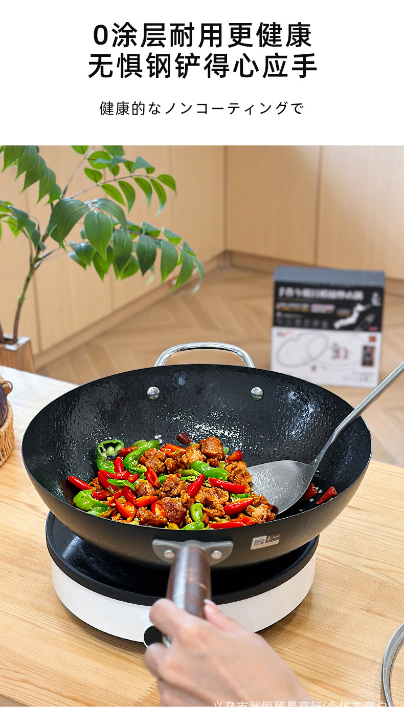 カラリ水滴模様ノンスティック鍋 大型 家庭用炒め鍋 無塗装 ガスコンロ対応 鉄鍋 ノンスティック鍋