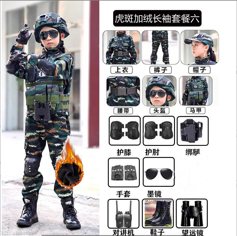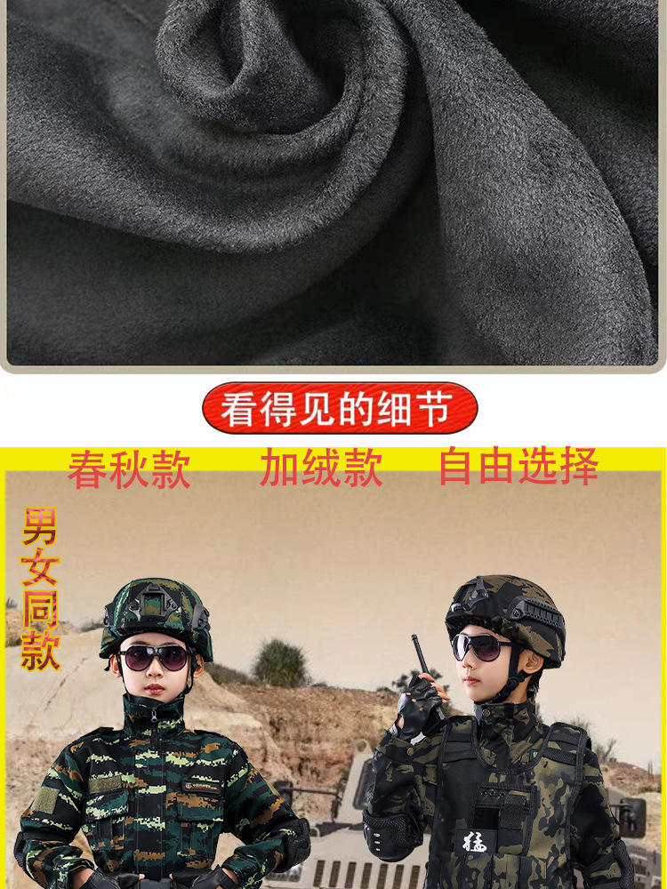 冬のベルベット子供迷彩服セット小中学生の軍事訓練服男女児童特殊兵の誕生日プレゼント