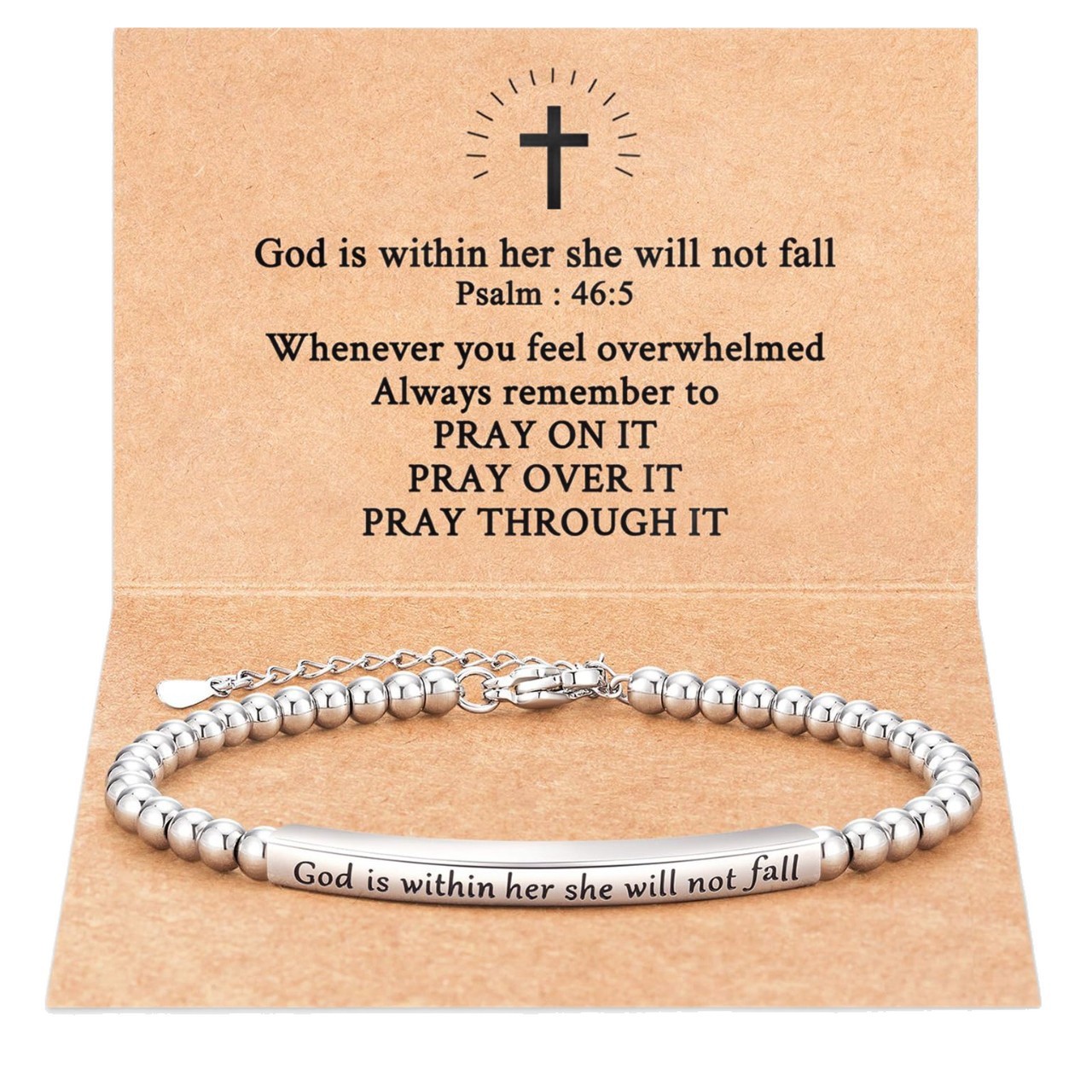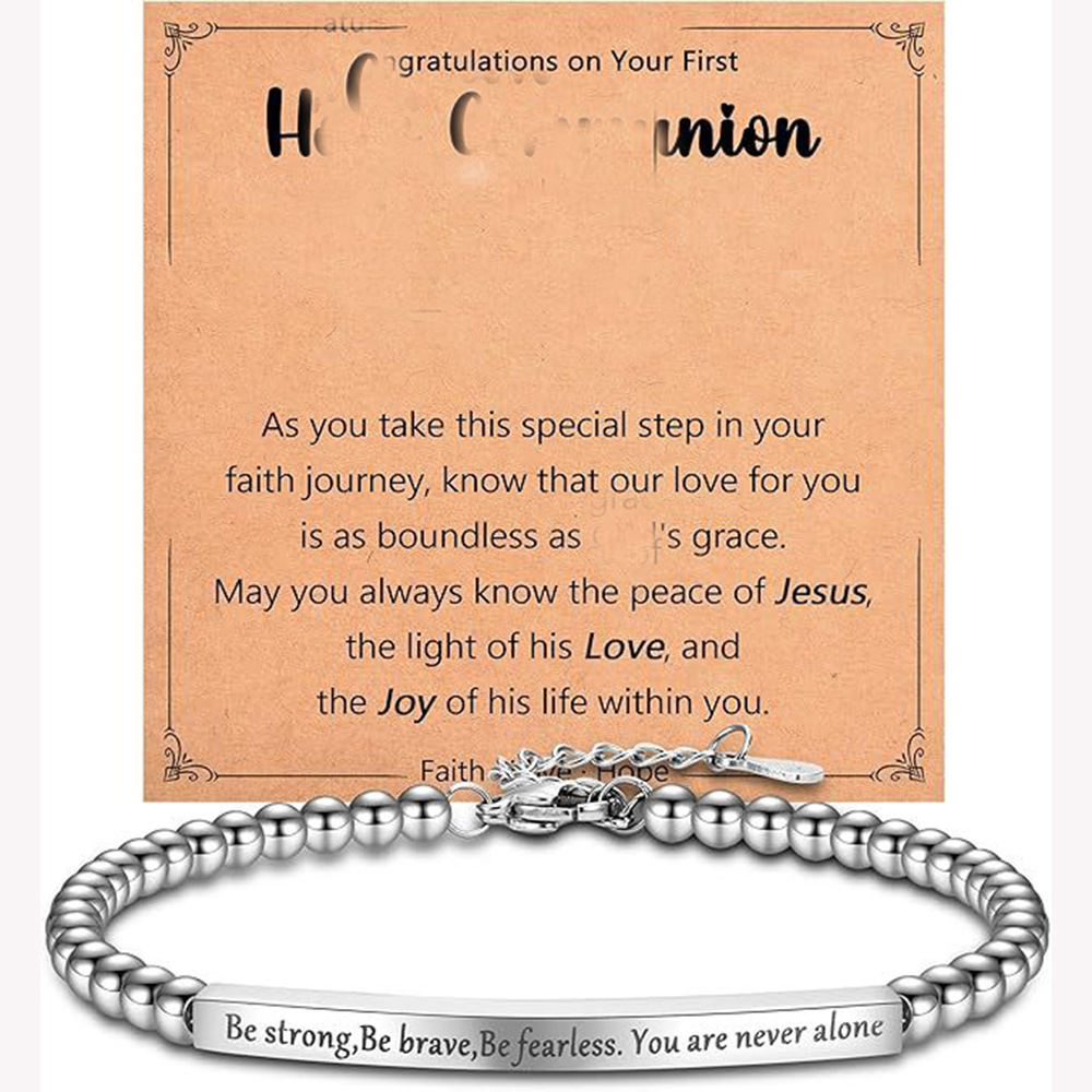 跨境串珠手链刻字不锈钢银珠可调节女士礼物手链不锈钢刻字手镯
