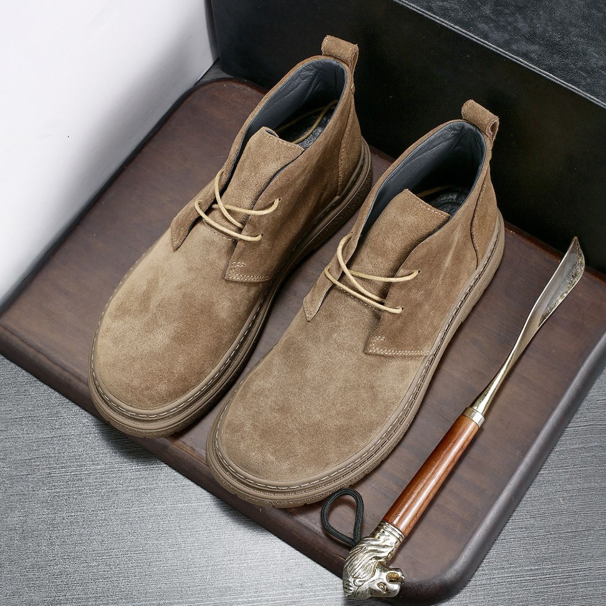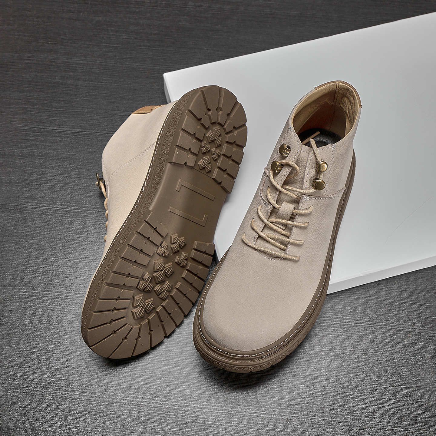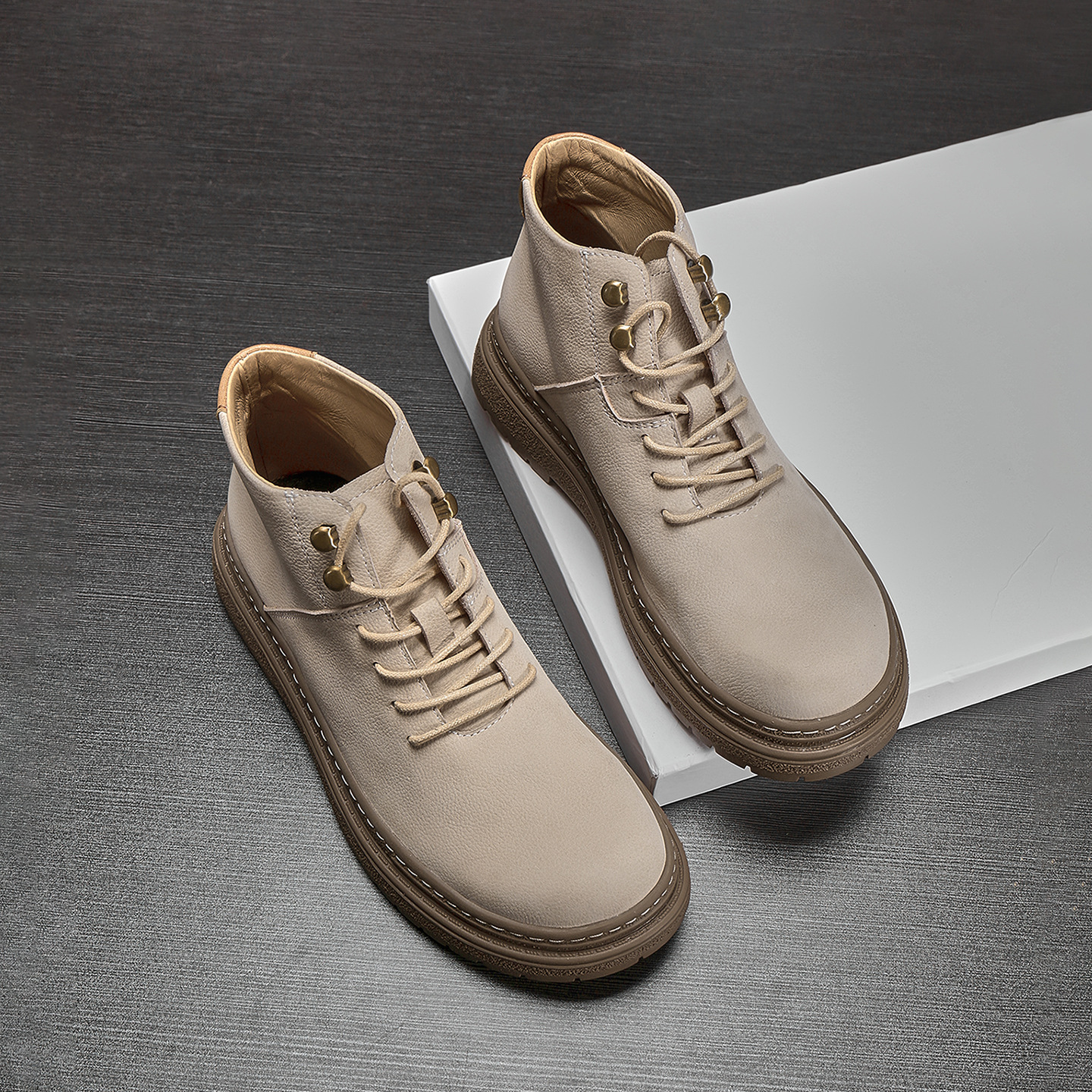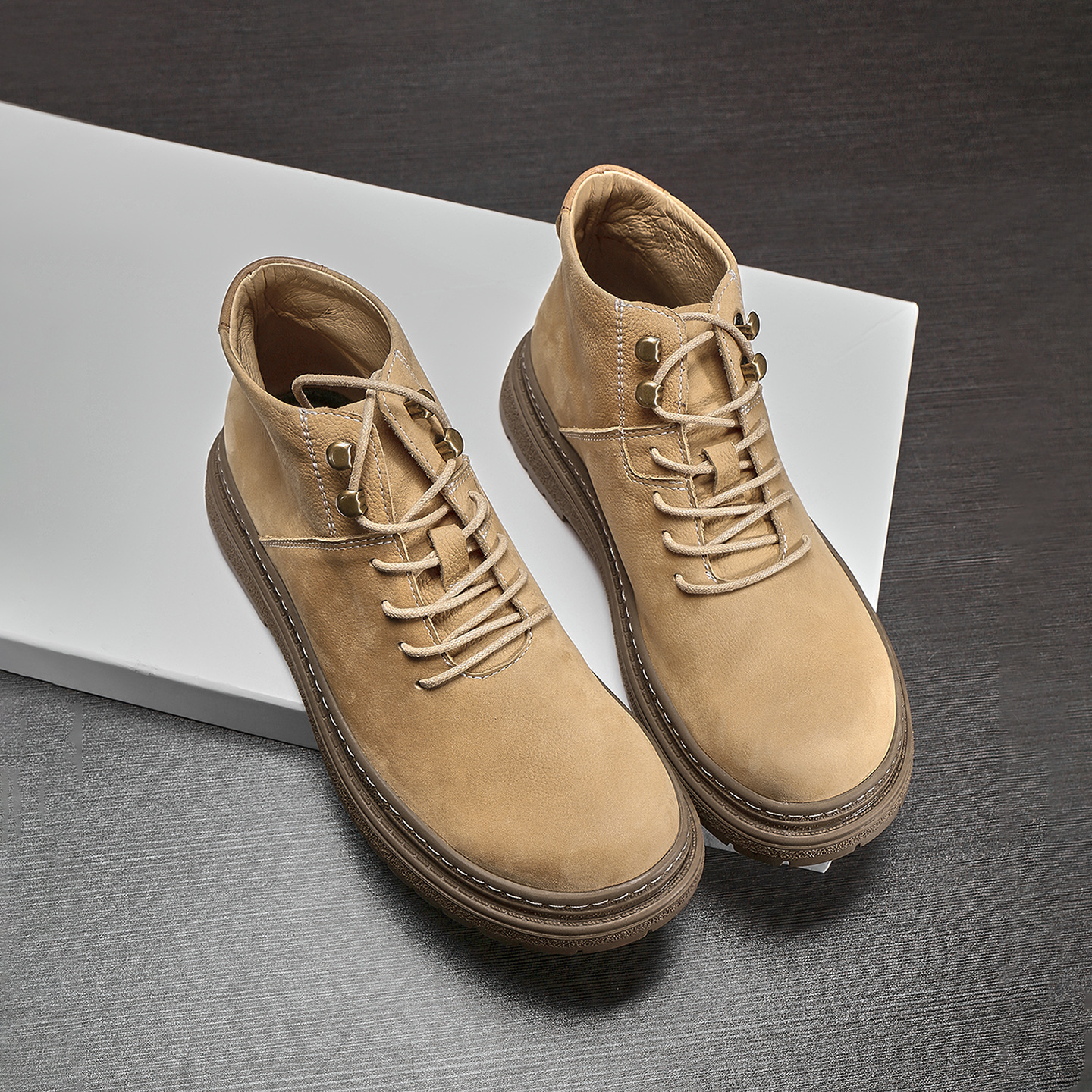 2025冬季高帮工装靴男士时尚复古户外靴系带厚底马丁靴圆头沙漠靴