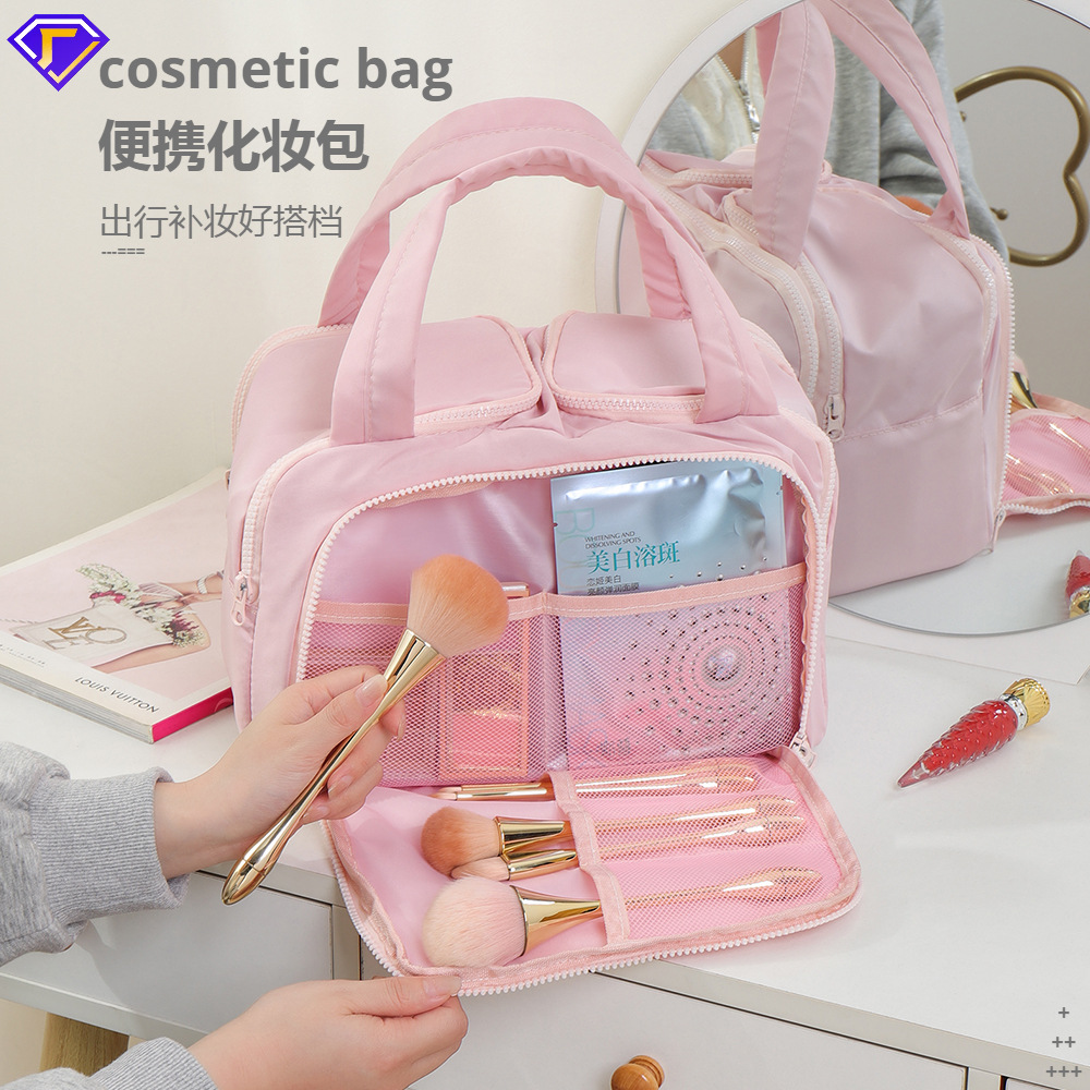 跨境新款旅行手提大容量洗漱包便携分区收纳包外出高级感化妆包包
