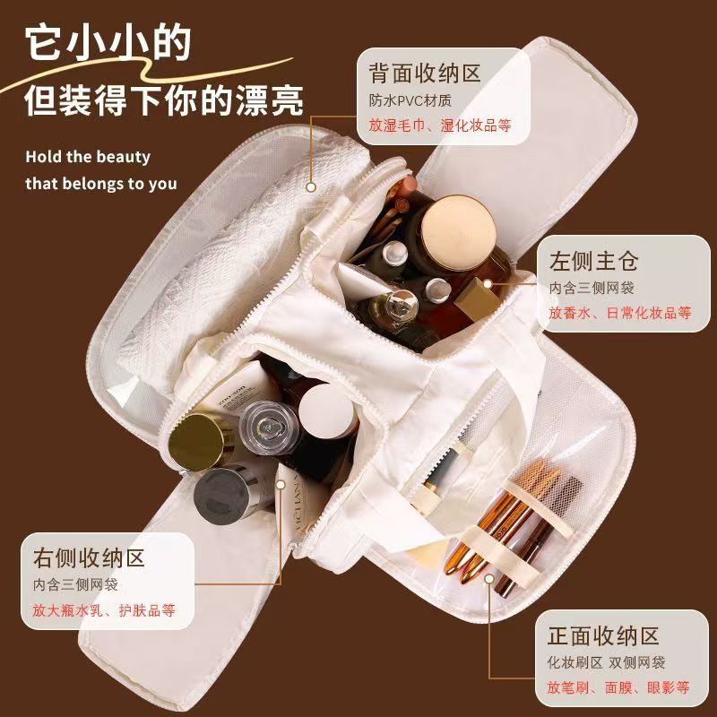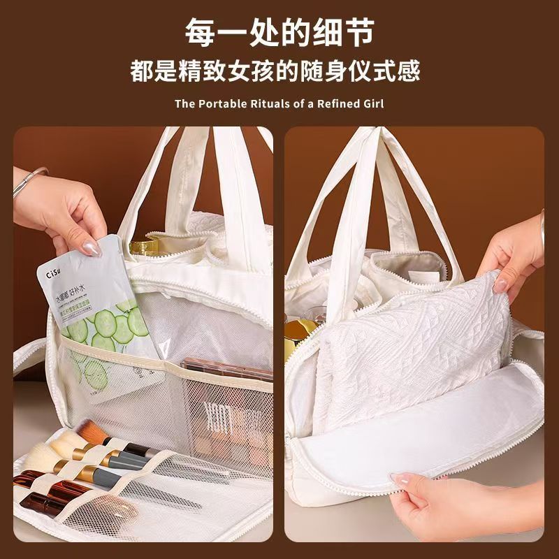 亚马逊同款便携洗漱包轻质蓬松化妆包轻奢高级分区收纳旅行手提包