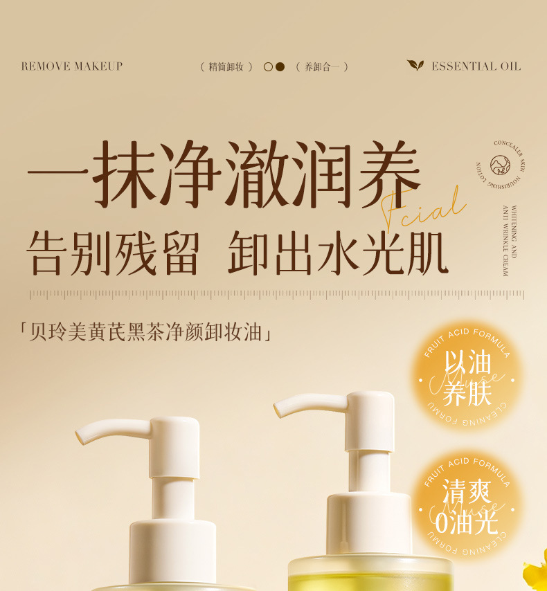 贝玲美黄芪黑茶净颜卸妆油深层清洁温和不刺激眼唇脸三合一卸妆油
