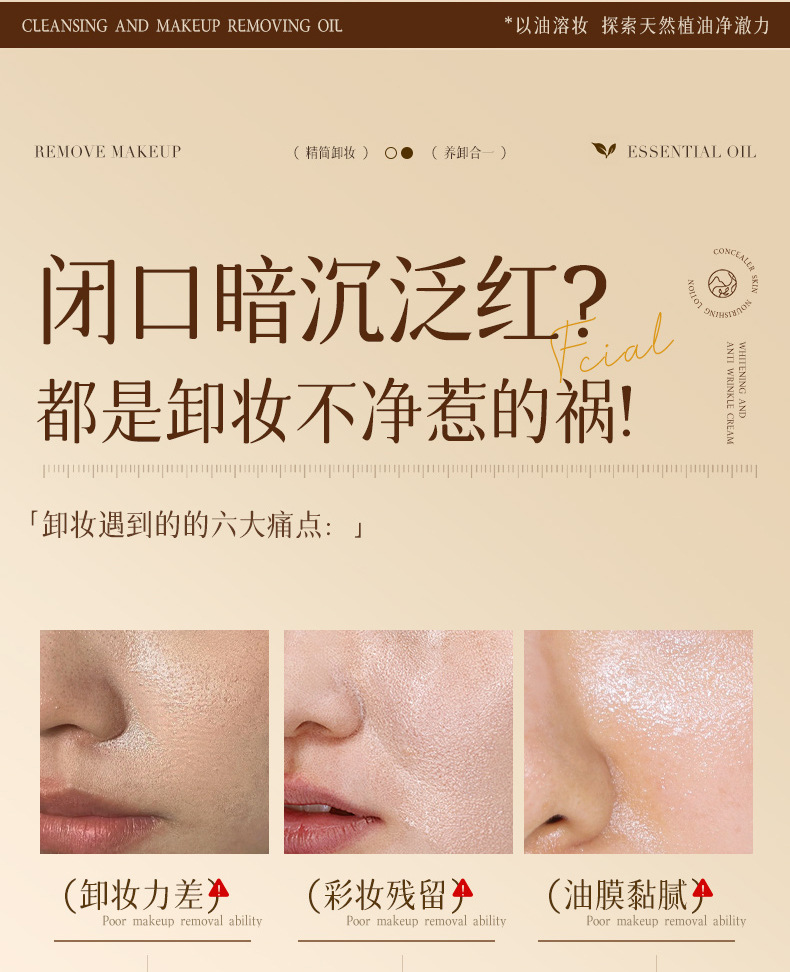 黄芪黑茶净颜卸妆油保湿温和清洁不刺激面部唇部睫毛卸妆油