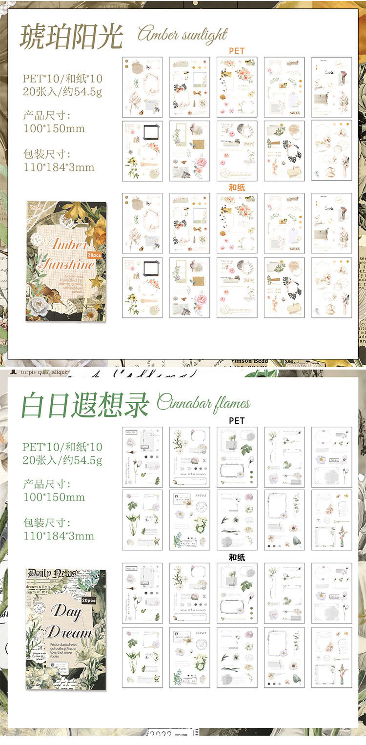 悦真自然叢書シリーズ手帳ステッカーパックpvc植物花卉レトロ素材紙子供手帳ステッカー