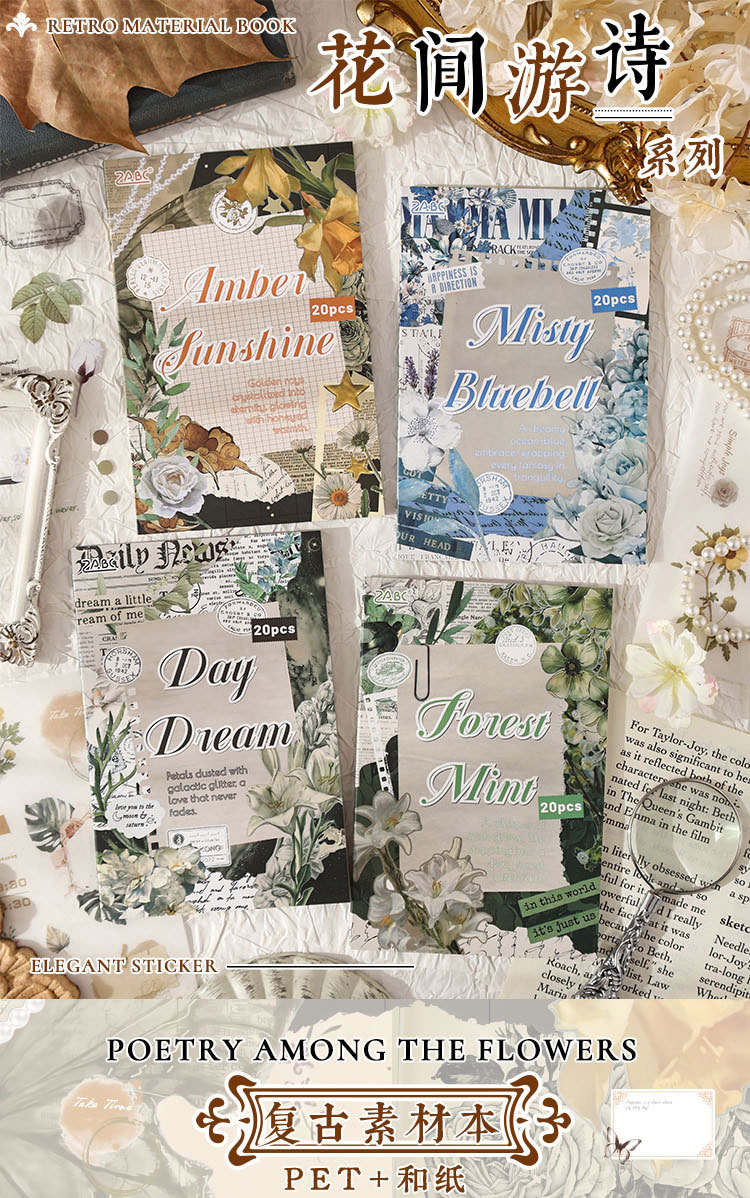 悦真花间游诗切膜贴纸手账贴纸本 跨境贴纸儿童贴纸pet手帐贴纸书