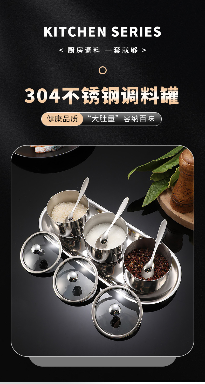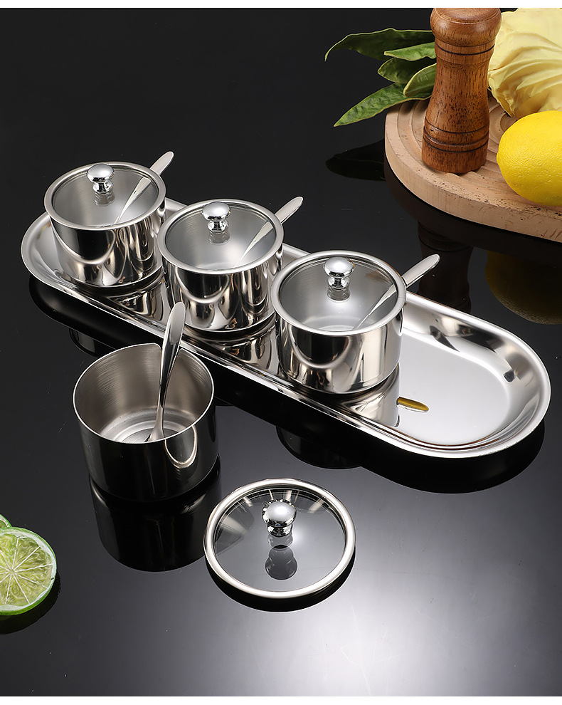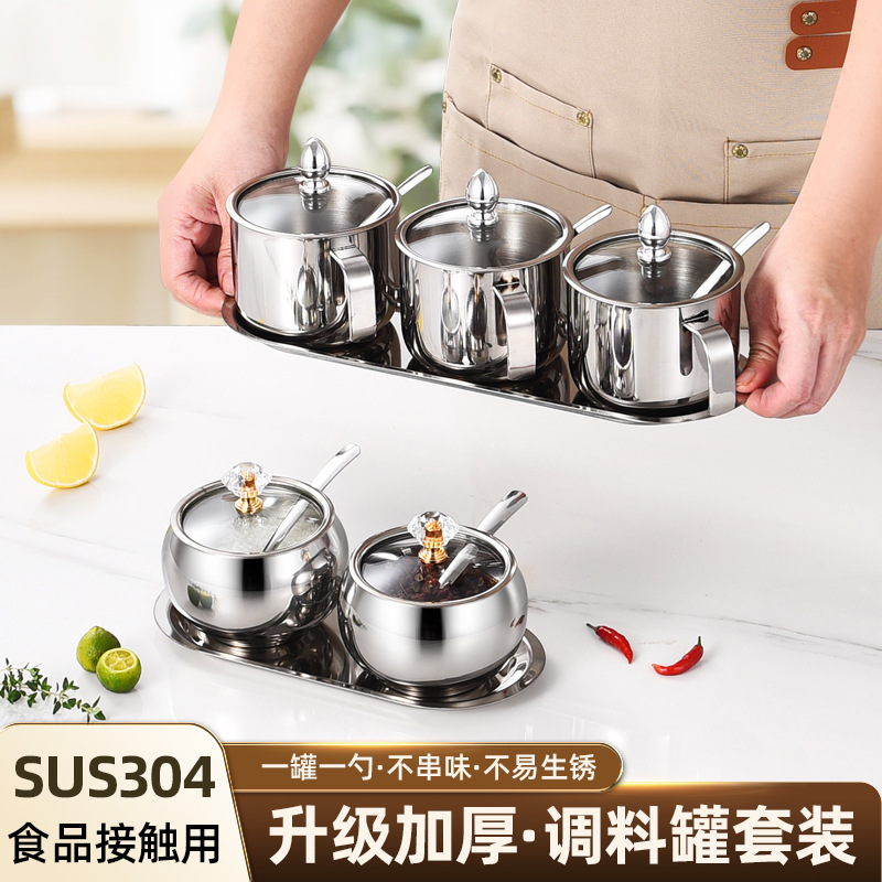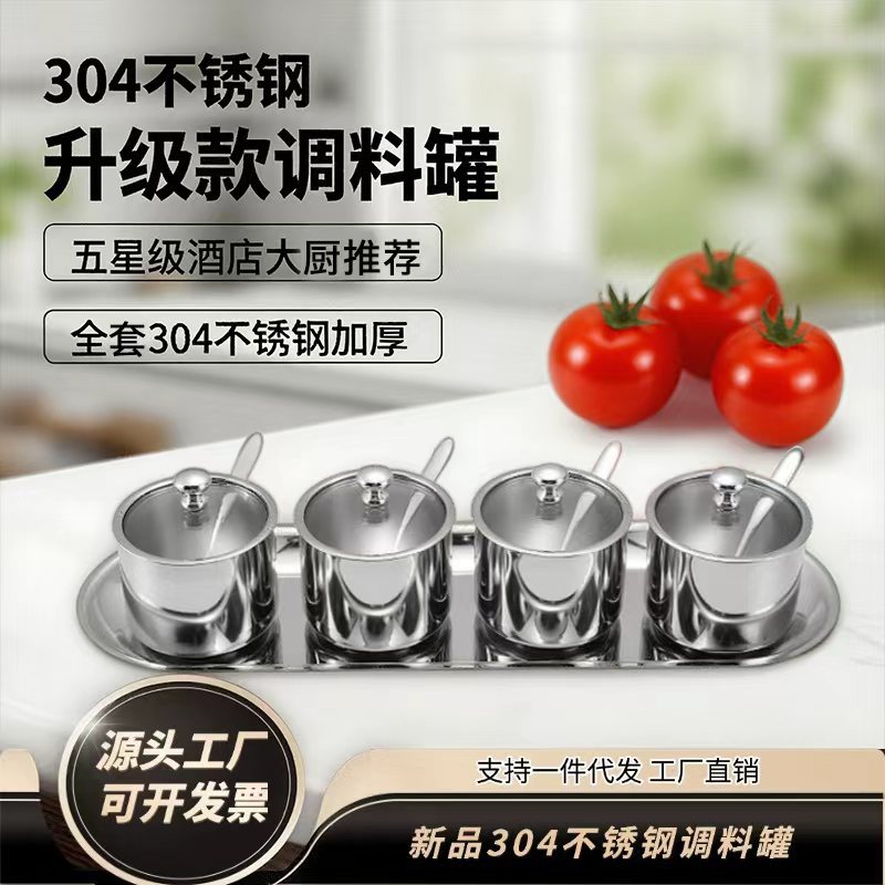 メーカー卸売り304ステンレス調味料箱スプーン付きトレイ調味缶家庭用台所用品食器セット