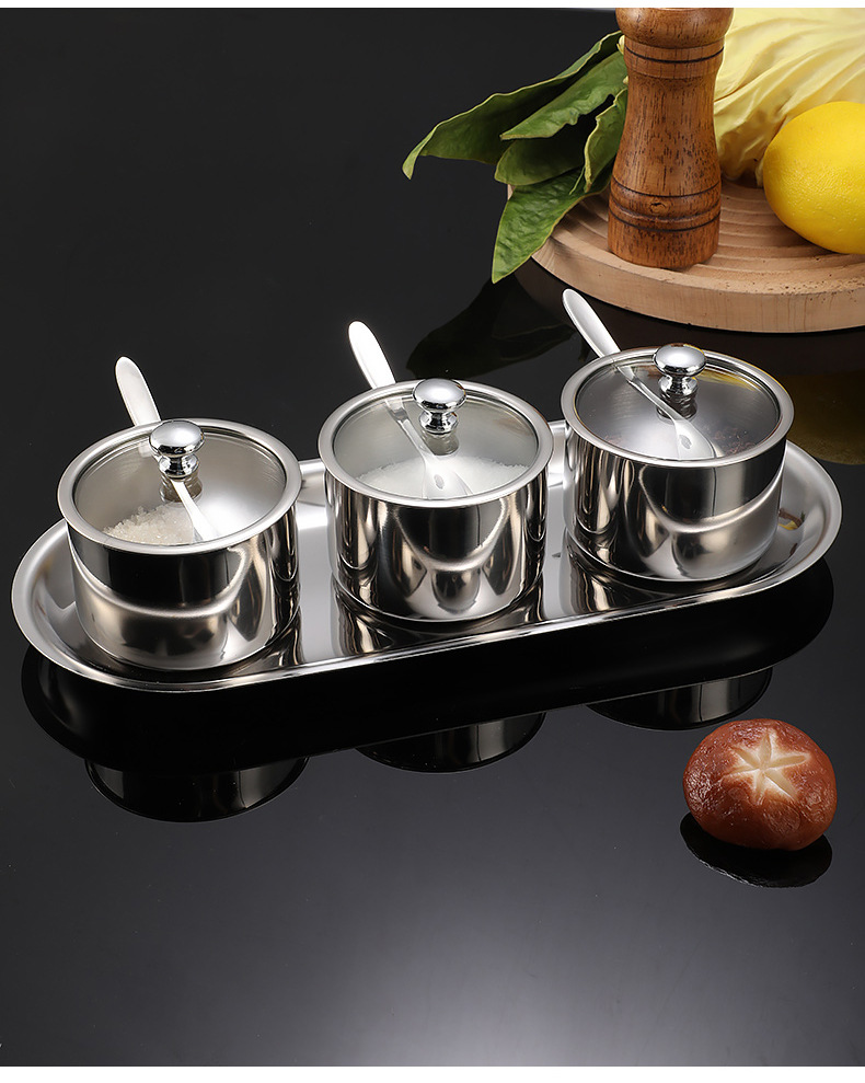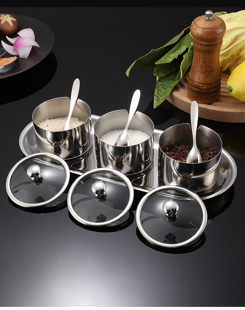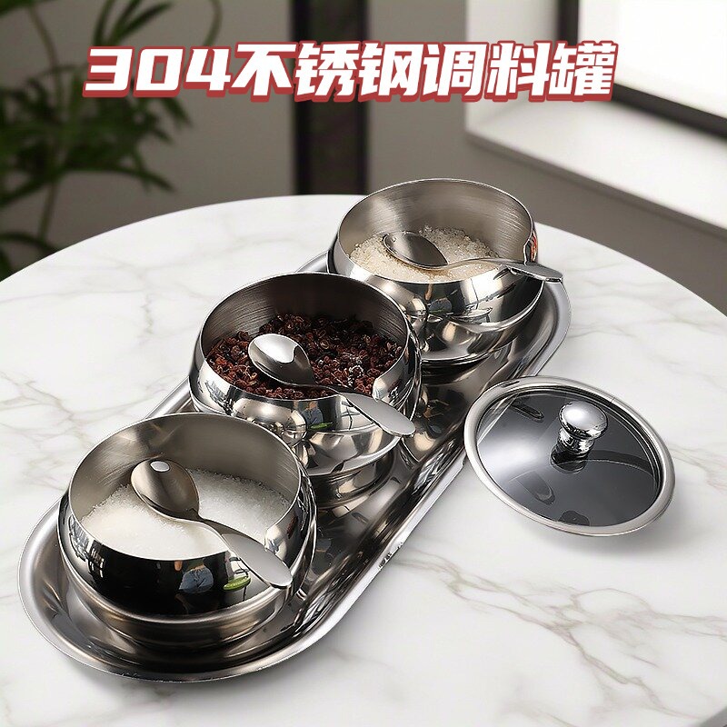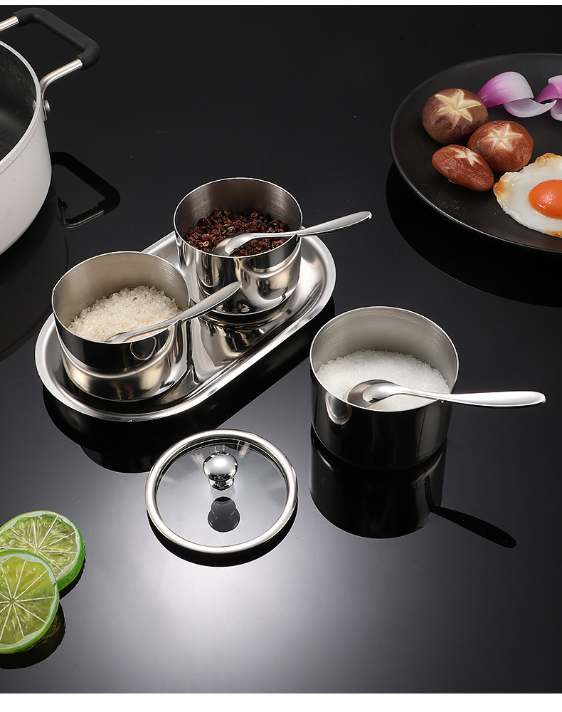 メーカー卸売り304ステンレス調味料箱スプーン付きトレイ調味缶家庭用台所用品食器セット