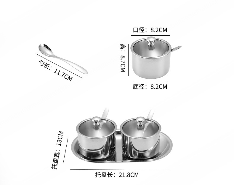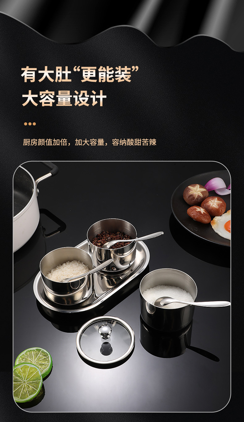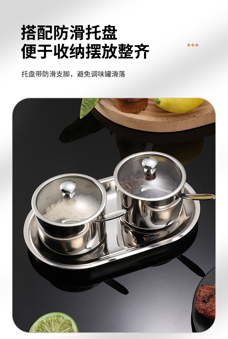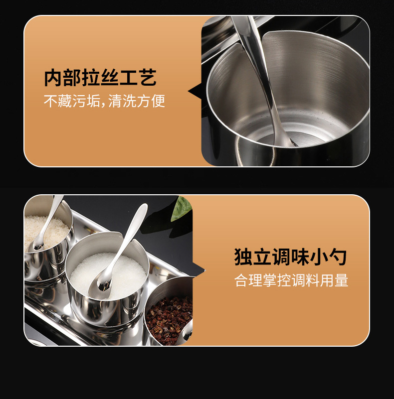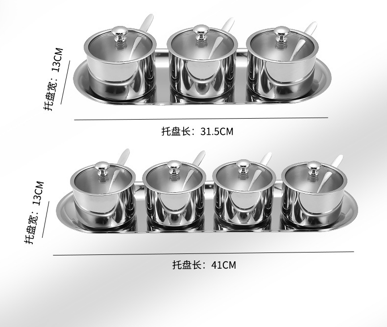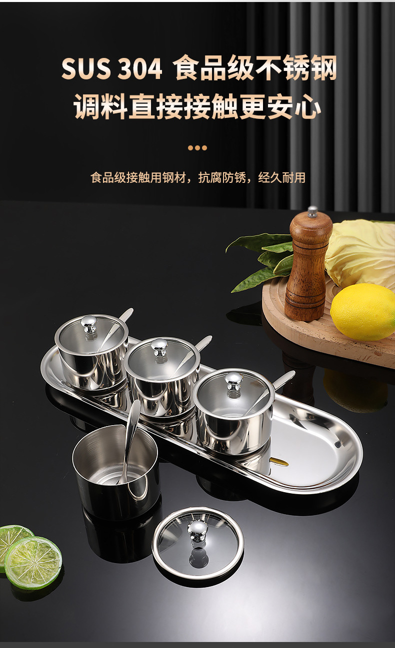 厂家直批新款304不锈钢调料盒带勺子托盘居家厨房用品餐具套装
