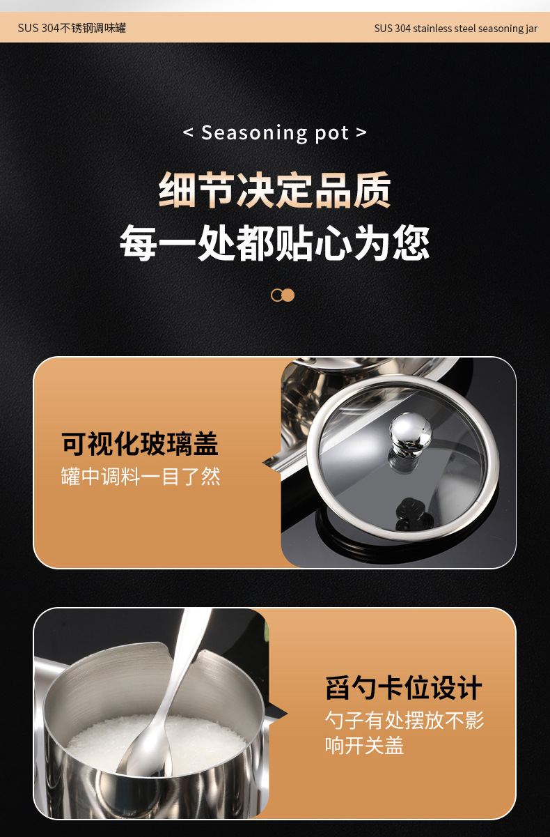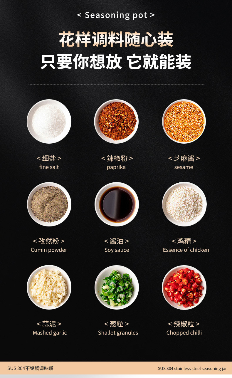 厂家直批304不锈钢调料罐厨房家用套装调味罐大容量辣椒油调料盒