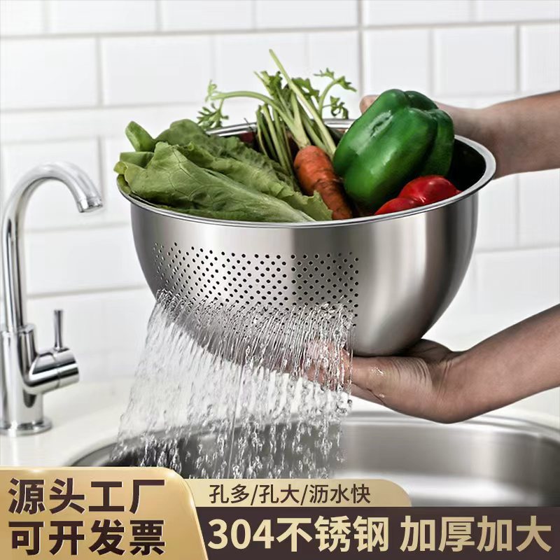沥水盆304不锈钢套装加厚食品级家用厨房洗菜洗米打蛋面盆水果篮