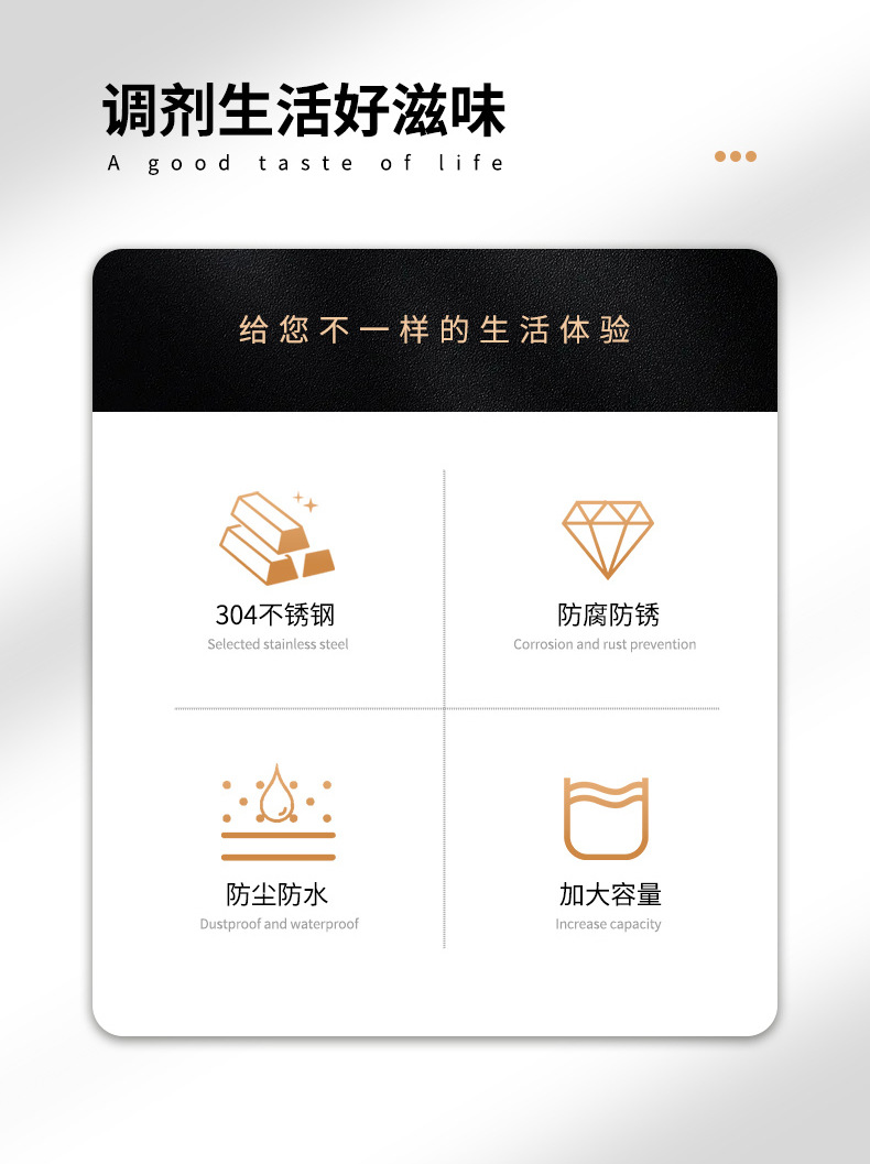 304不锈钢调料盒套装高端家用厨房调味罐组合盐调味佐料收纳瓶罐