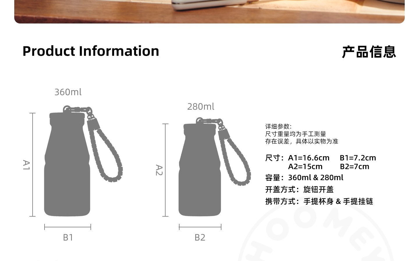hoomey保温杯小巧便携水杯女高颜值杯子口袋牛奶杯女神节礼物定制