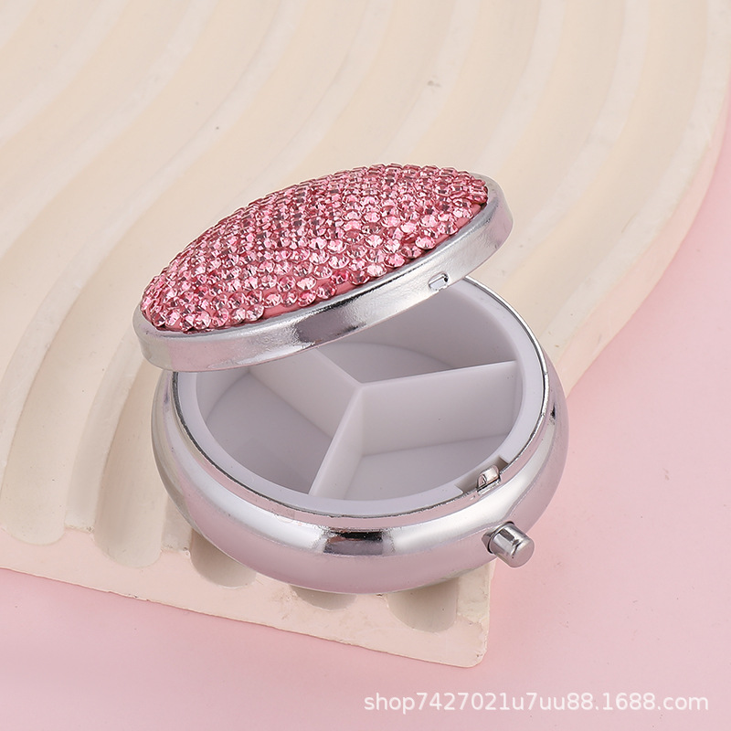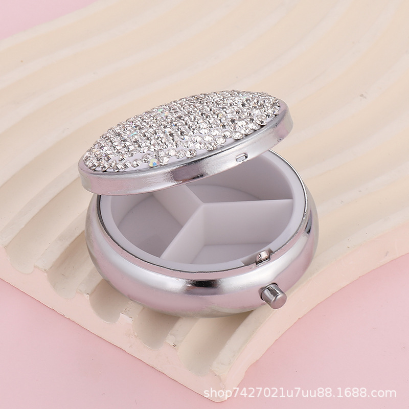 亚马逊爆款户外旅行急救小药箱便携式随身携带镶钻药盒圆形收纳盒