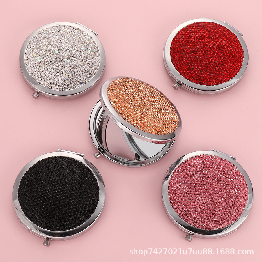新款镶钻化妆镜 创意金属翻盖双面镜 迷你随身便携小镜子女士美甲